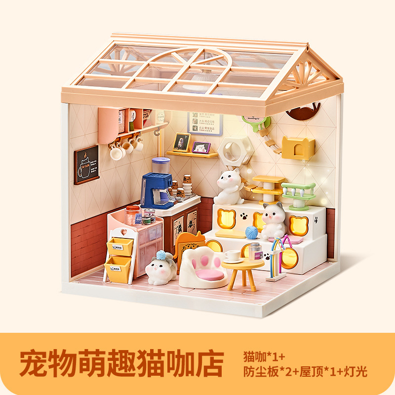 • [방진판*2+지붕+주변조명] 펫귀여운 고양이 카페샵