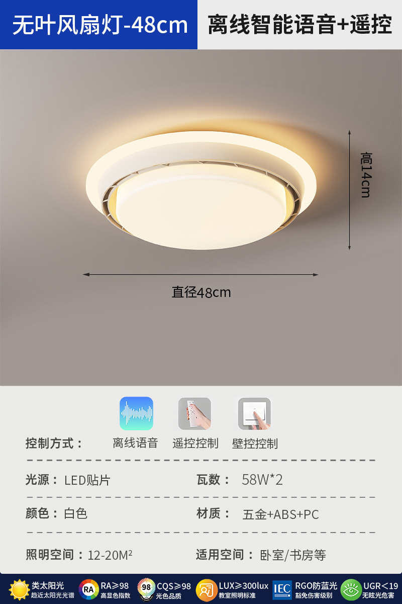 잎이 없는 팬 램프 미니멀 한 현대 침실 천장 램프 새로운 지능형 주파수 변환 전기 팬 램프 음소거 눈 보호 연구 램프
