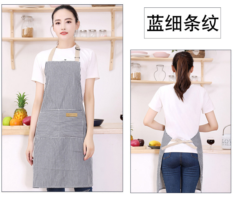 ✅면 및 린넨 목 줄무늬 대외 무역 앞치마 가정 식당 주방 베이킹 네일 아트 앞치마 방지 오일 작업 앞치마 배치스토어 가기