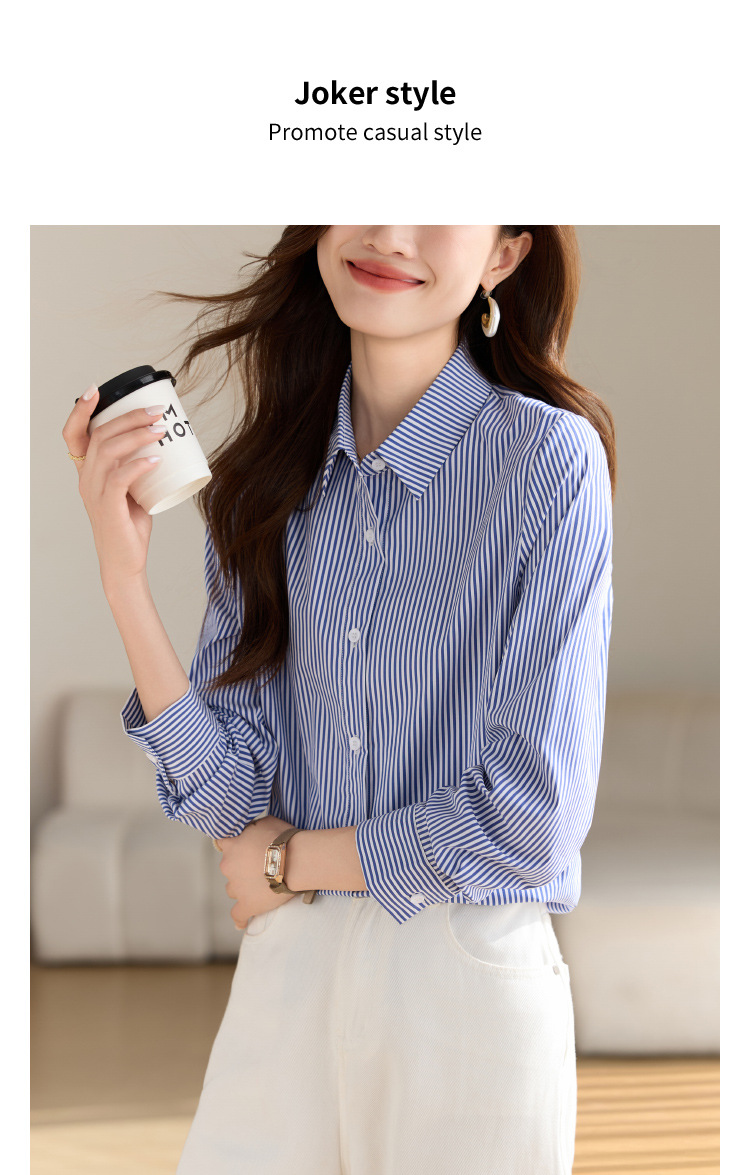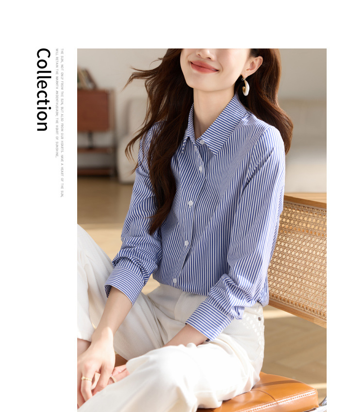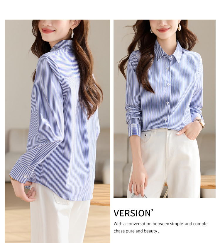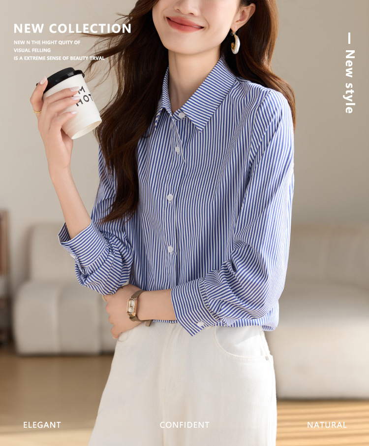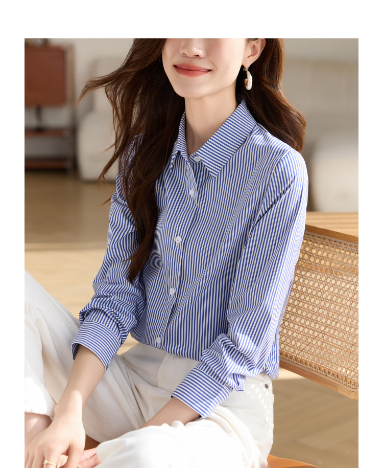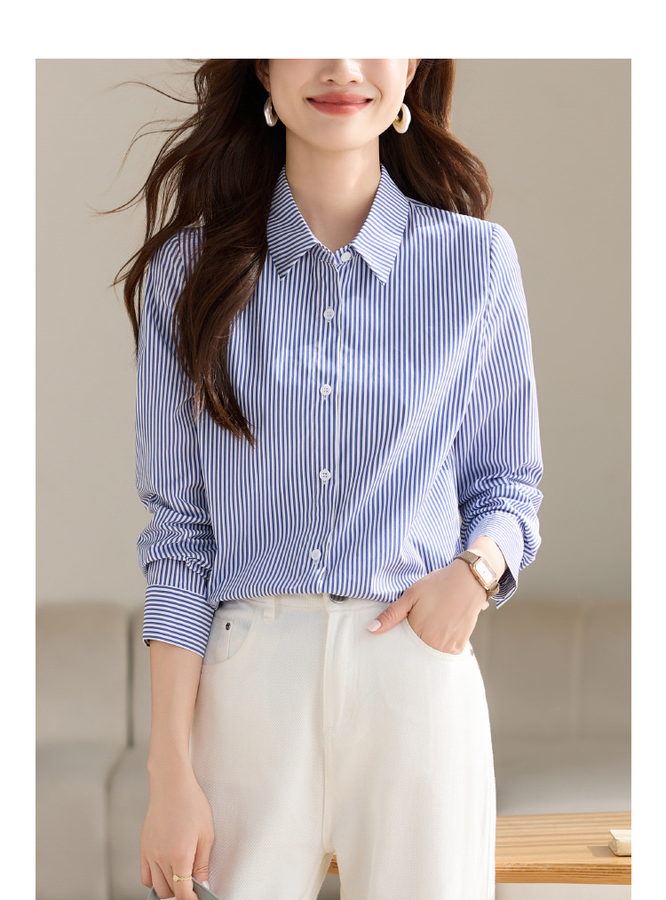 블루 셔츠 여성용 긴 소매 2025 봄 새로운 올 매치 기질 전문 통근 파란색과 흰색 줄무늬 셔츠 도매스토어 가기