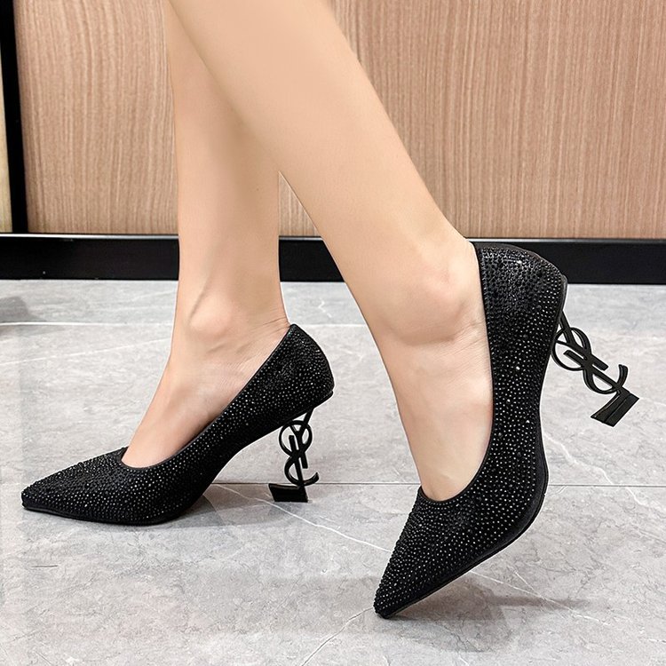 • 다이아몬드가 박힌 블랙 힐 슈즈