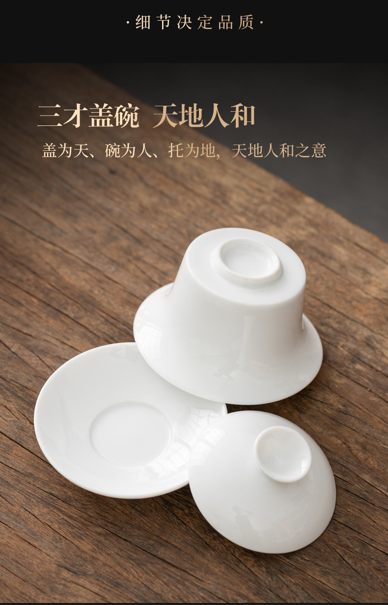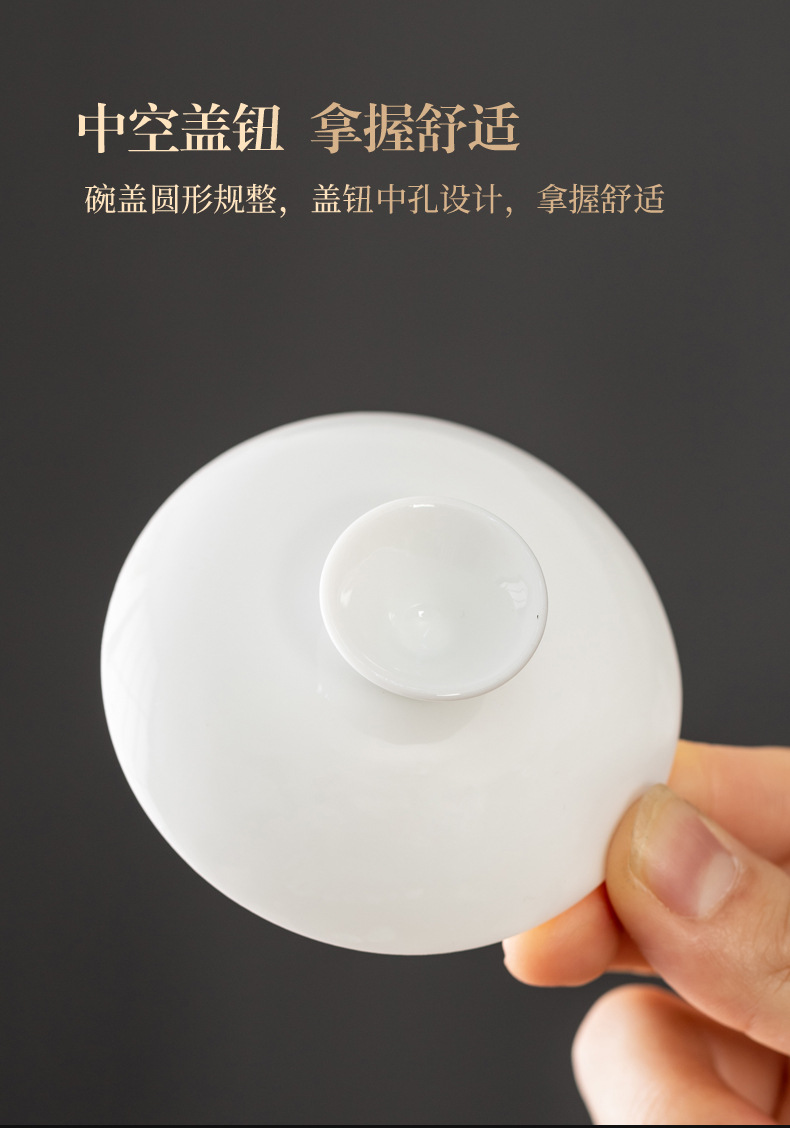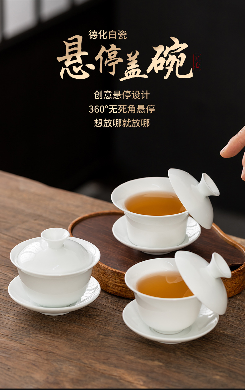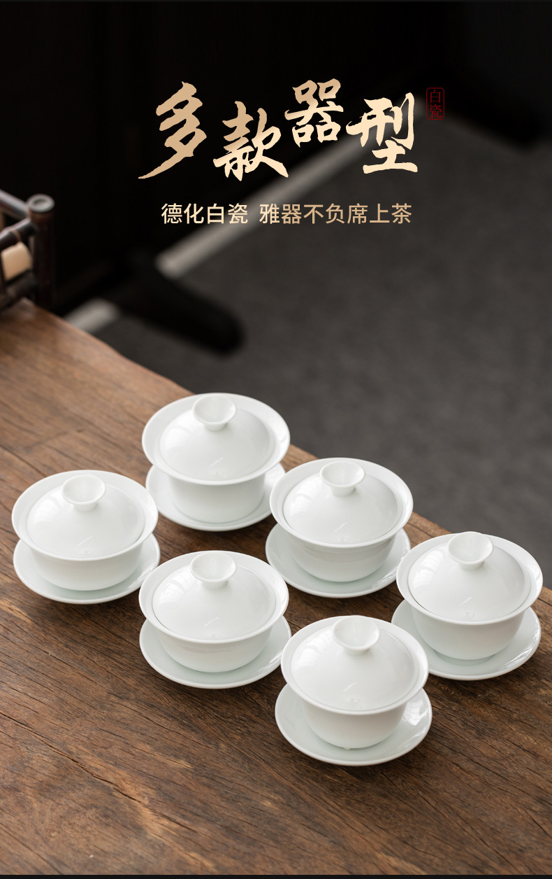 ✅호버링 보울 염소 비취 차 Sancai Dehua 세라믹 화이트 도자기 커버 보울 티 컵 홈 쿵푸 티 세트 차