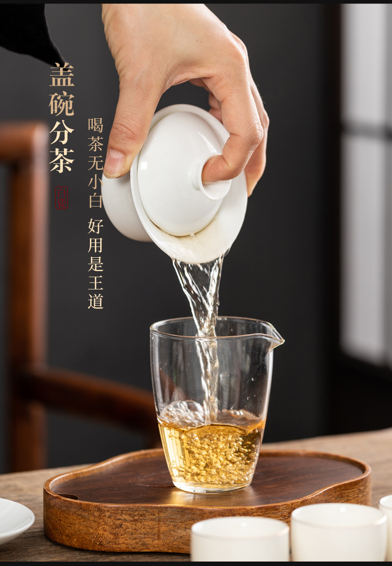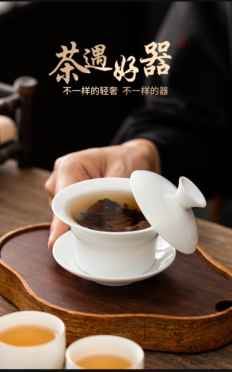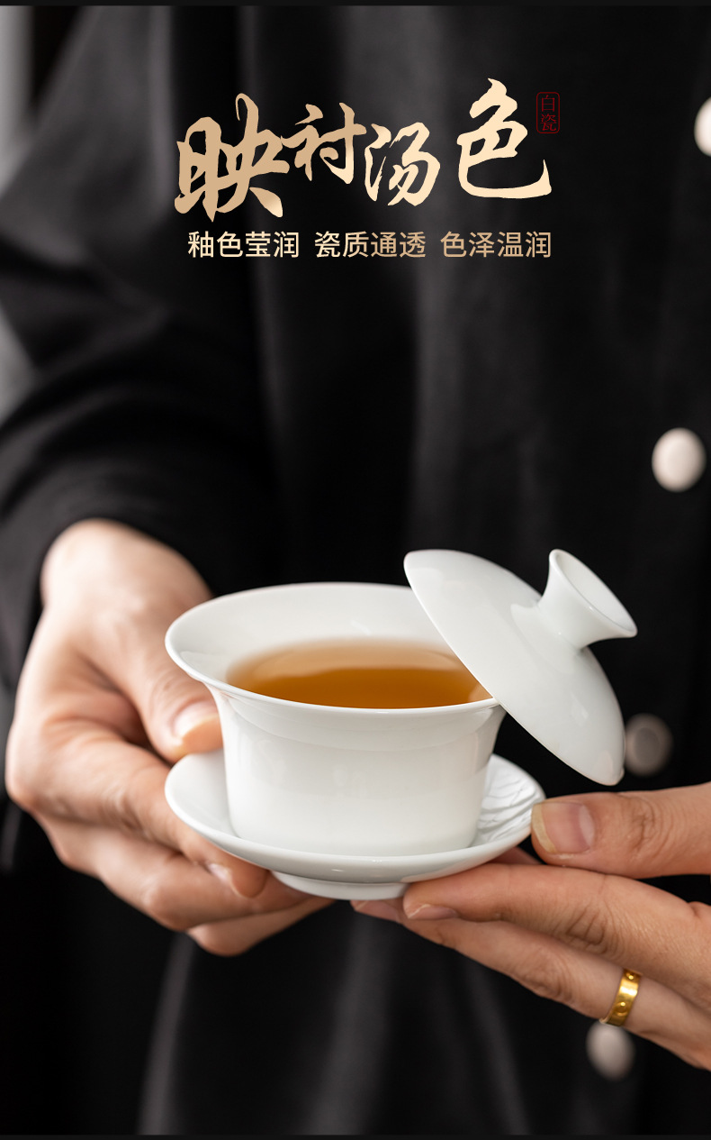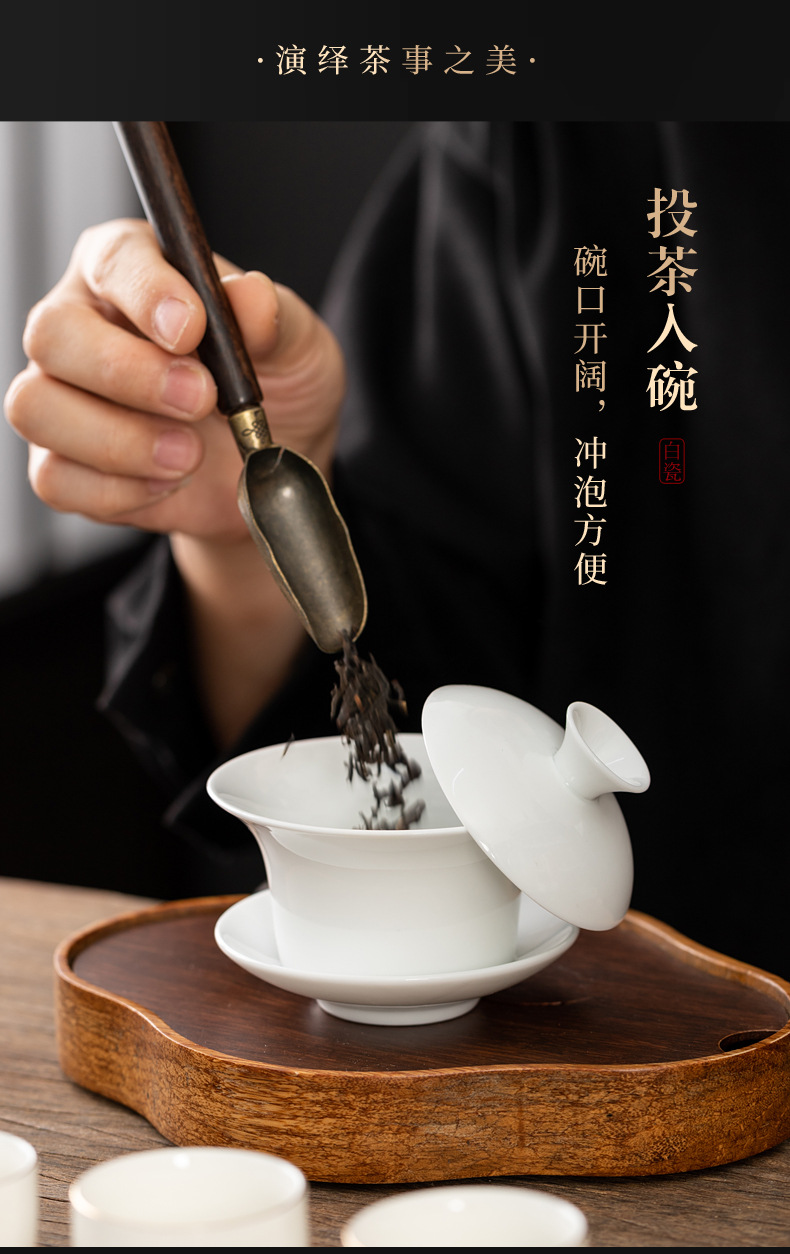 ✅호버링 보울 염소 비취 차 Sancai Dehua 세라믹 화이트 도자기 커버 보울 티 컵 홈 쿵푸 티 세트 차