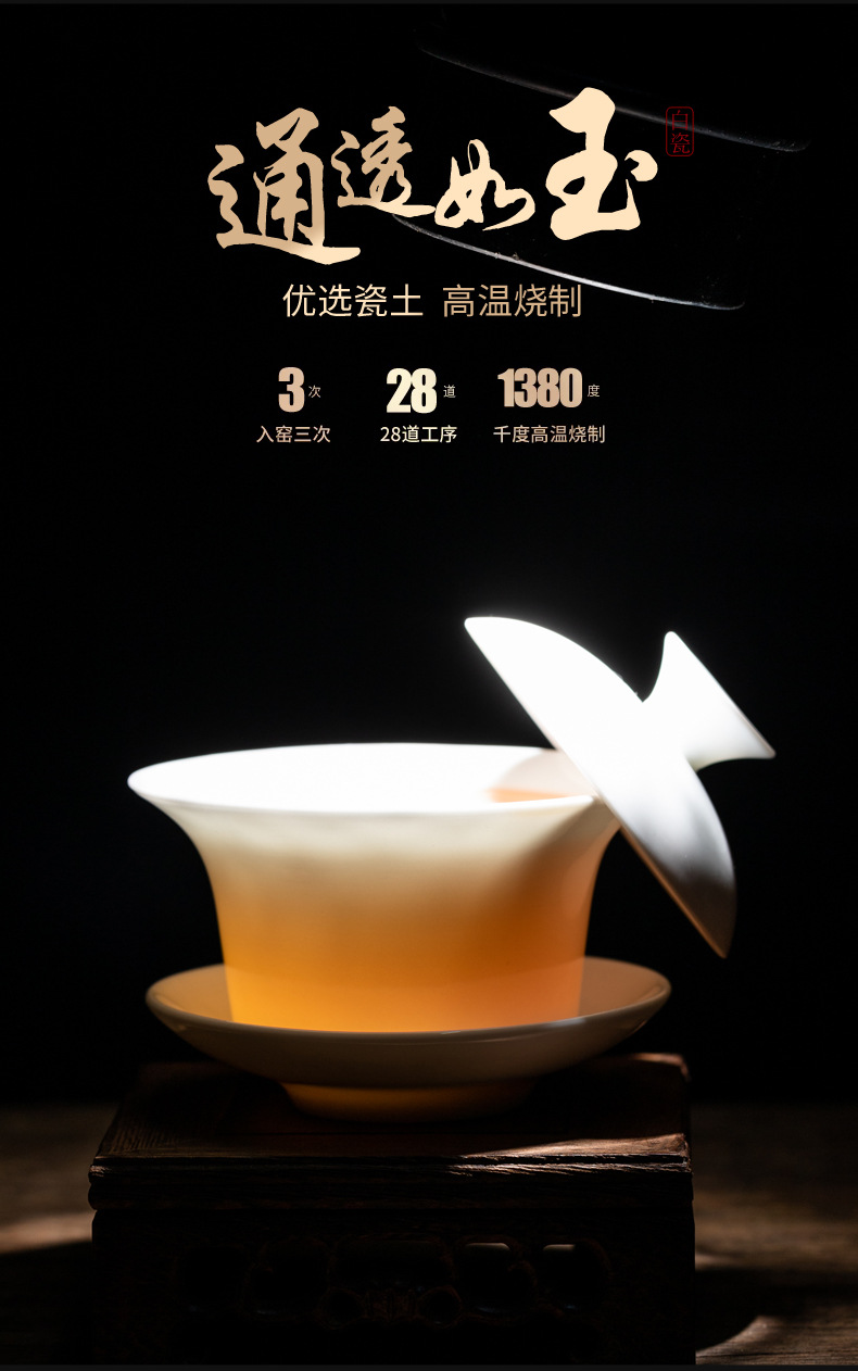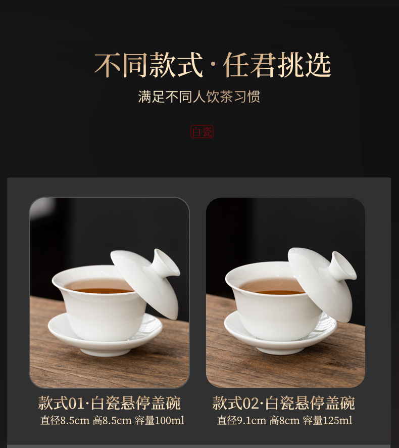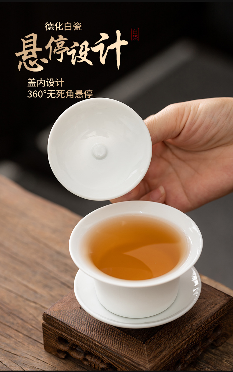 ✅호버링 보울 염소 비취 차 Sancai Dehua 세라믹 화이트 도자기 커버 보울 티 컵 홈 쿵푸 티 세트 차스토어 가기