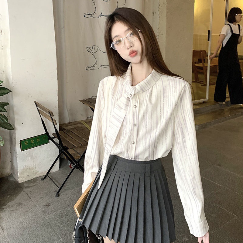 프랑스 넥타이-염료 플로팅 셔츠 여성의 봄과 가을 새로운 느슨한 디자인 감각 긴 소매 줄무늬 셔츠 틈새