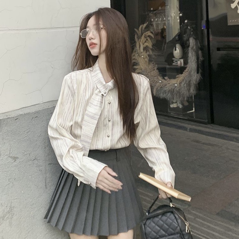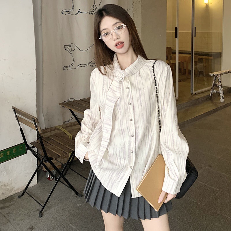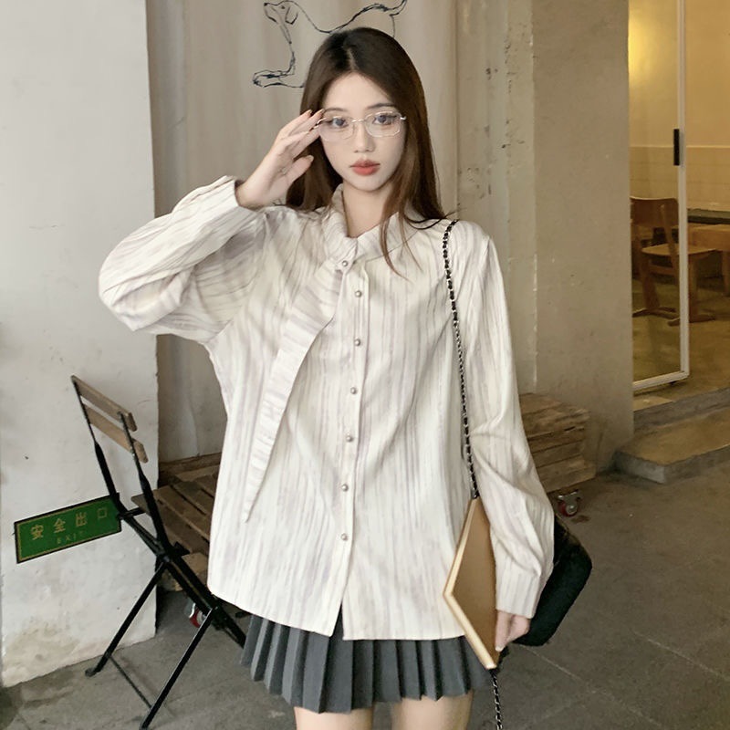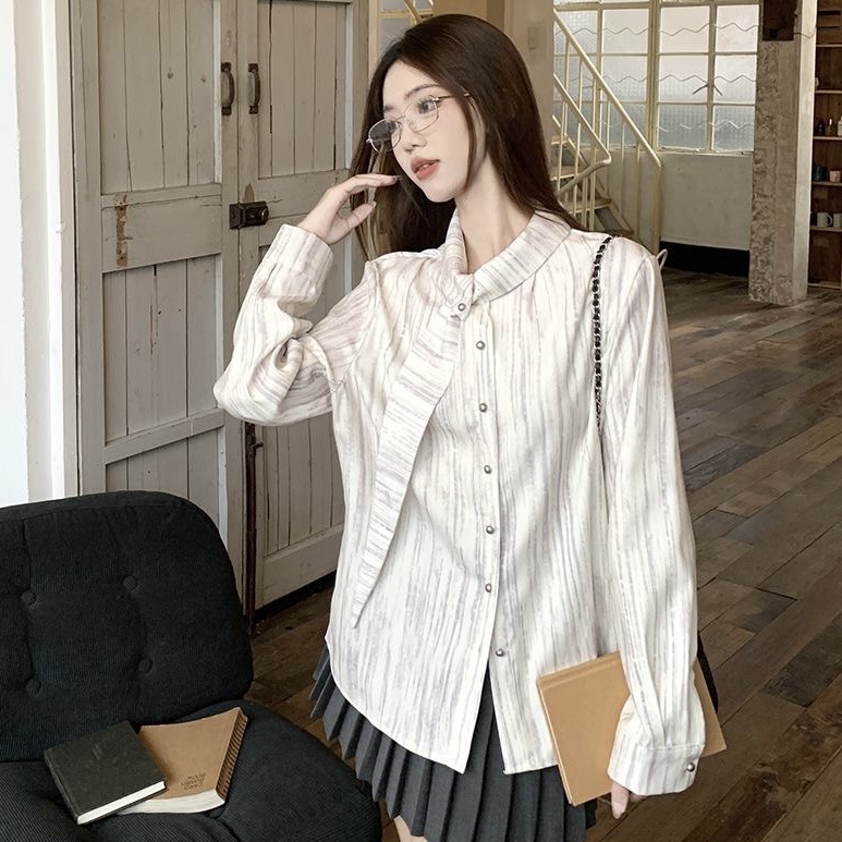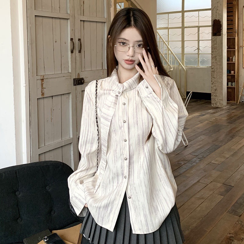 프랑스 넥타이-염료 플로팅 셔츠 여성의 봄과 가을 새로운 느슨한 디자인 감각 긴 소매 줄무늬 셔츠 틈새스토어 가기