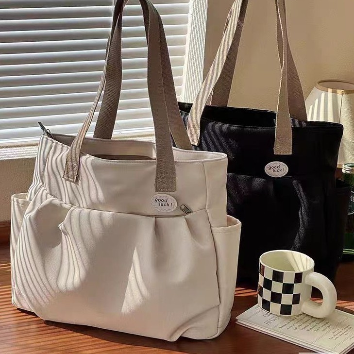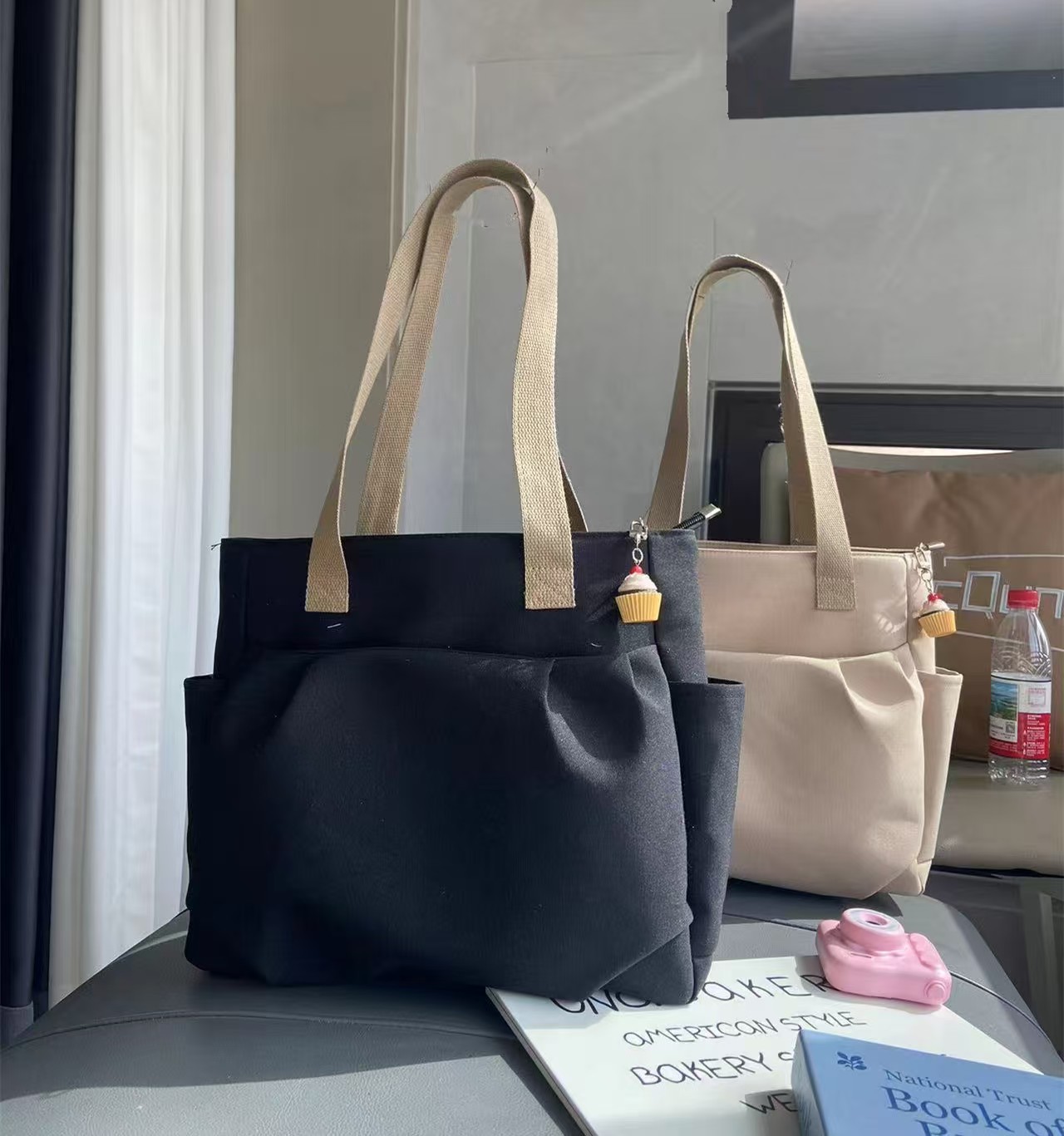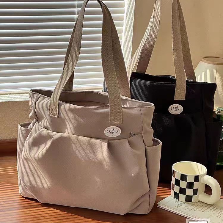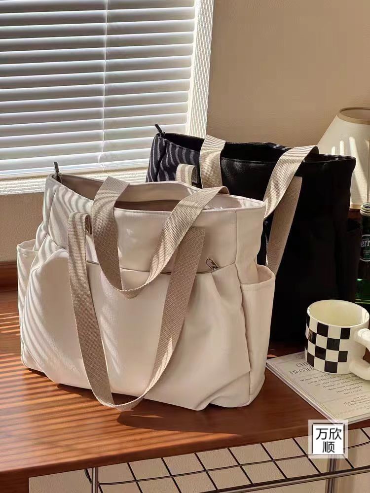 캔버스 가방 여성 2025 새로운 패션 인기있는 대학생 클래스 통근 토트 백 대용량 어깨 가방스토어 가기