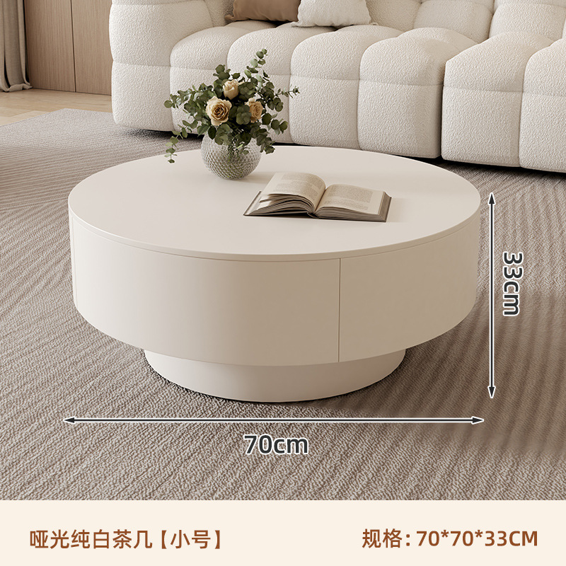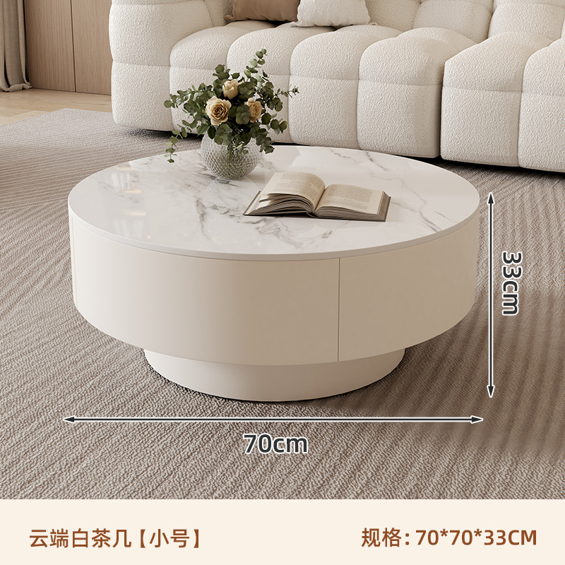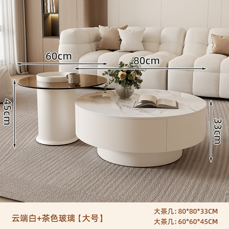 크리에이티브 크림 스타일 미니멀리스트 라운드 록 플레이트 커피 테이블 거실 홈 2024 새로운 작은 아파트 유리 커피 테이블 조합스토어 가기