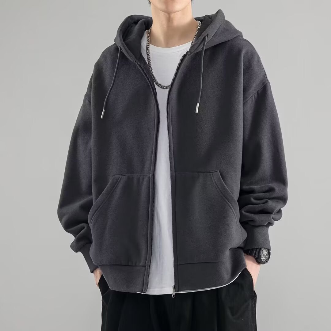 秋季男装新款男女情侣潮流感痞帅美式复古连帽开衫卫衣外套男上衣