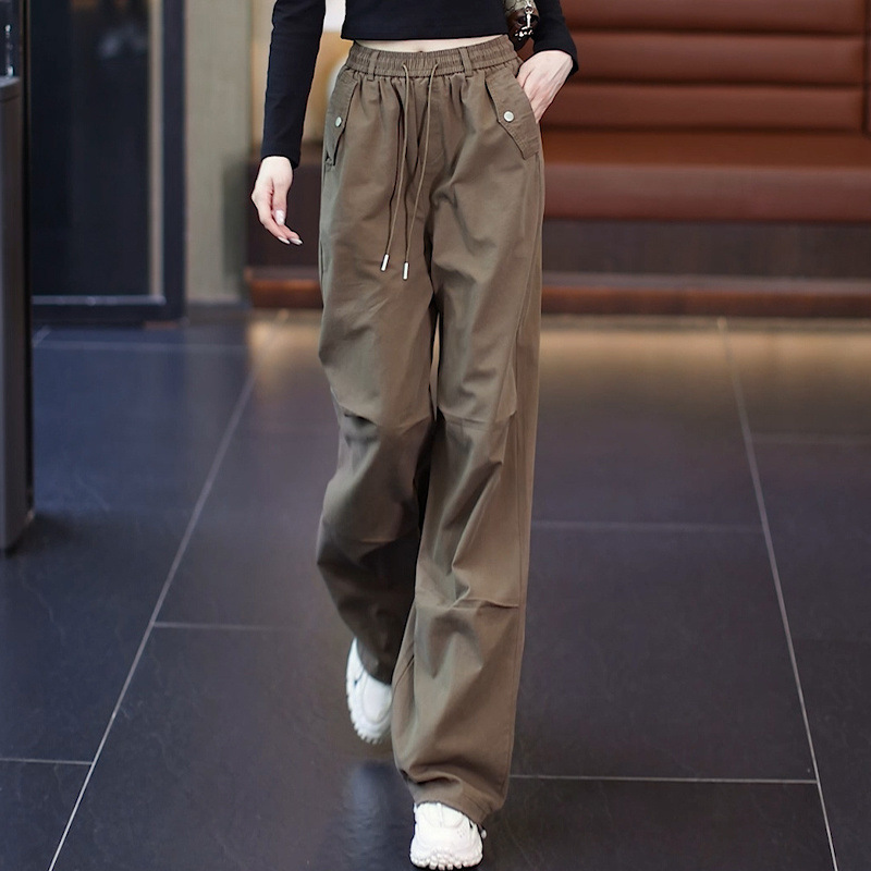 아메리칸 스타일 오버롤 넓은 다리 바지 여성용 2025 가을 및 겨울 새로운 높은 허리 느슨한 슬리밍 폭발성 캐주얼 스트레이트 바지