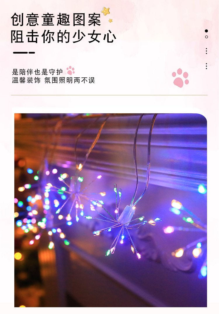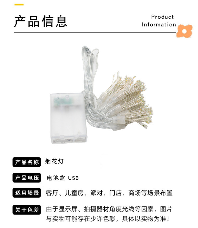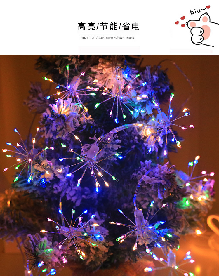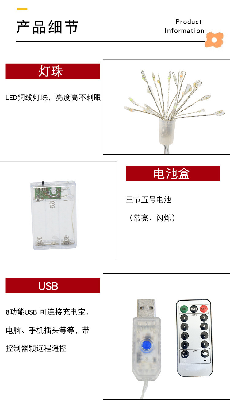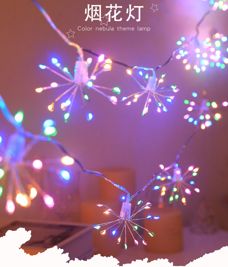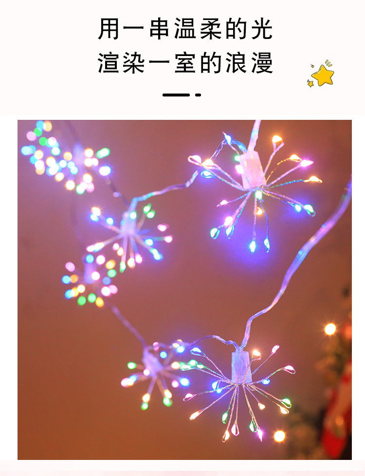 국경 간 새로운 LED 불꽃 놀이 USB 배터리 상자 폭발 스타 민들레 컬러 빛 문자열 크리스마스 야외 별스토어 가기