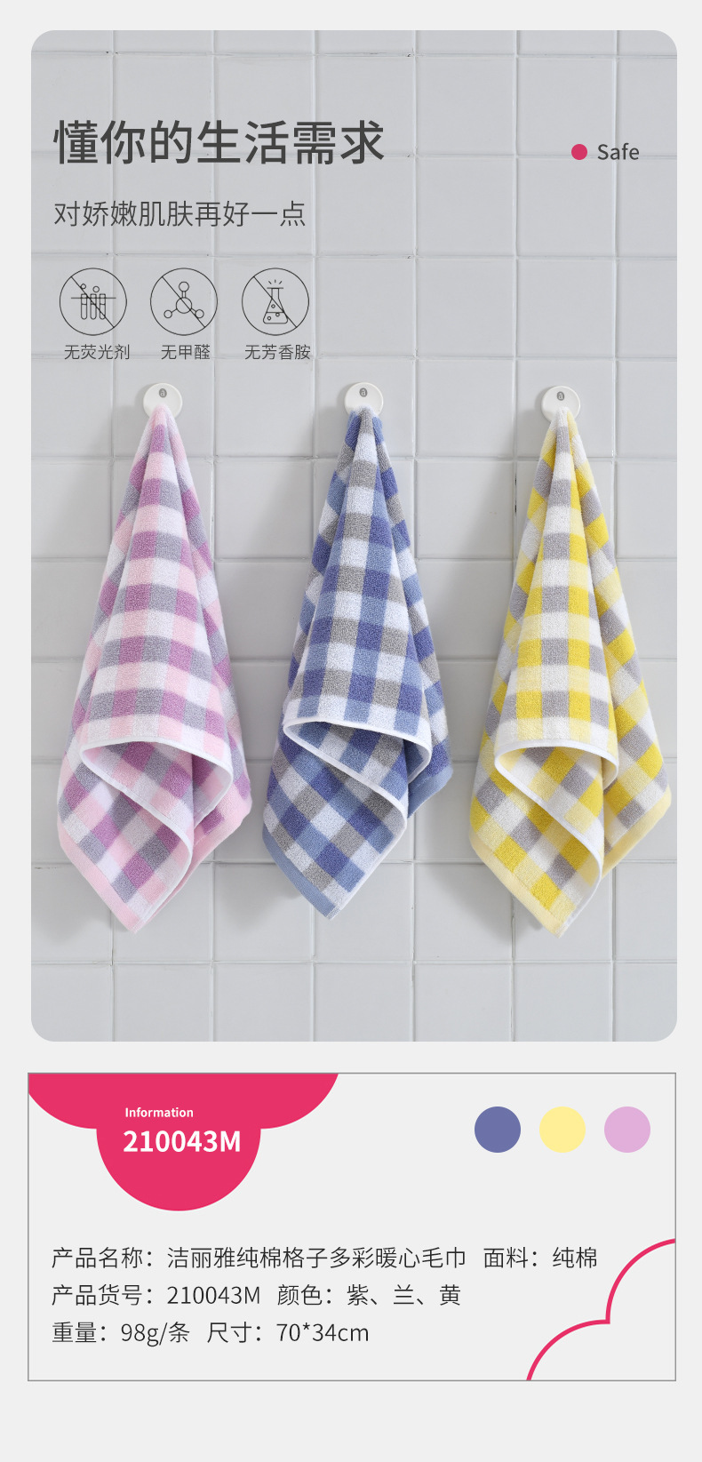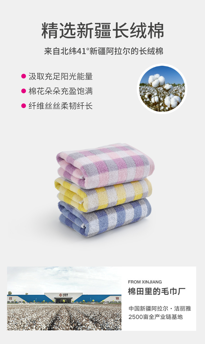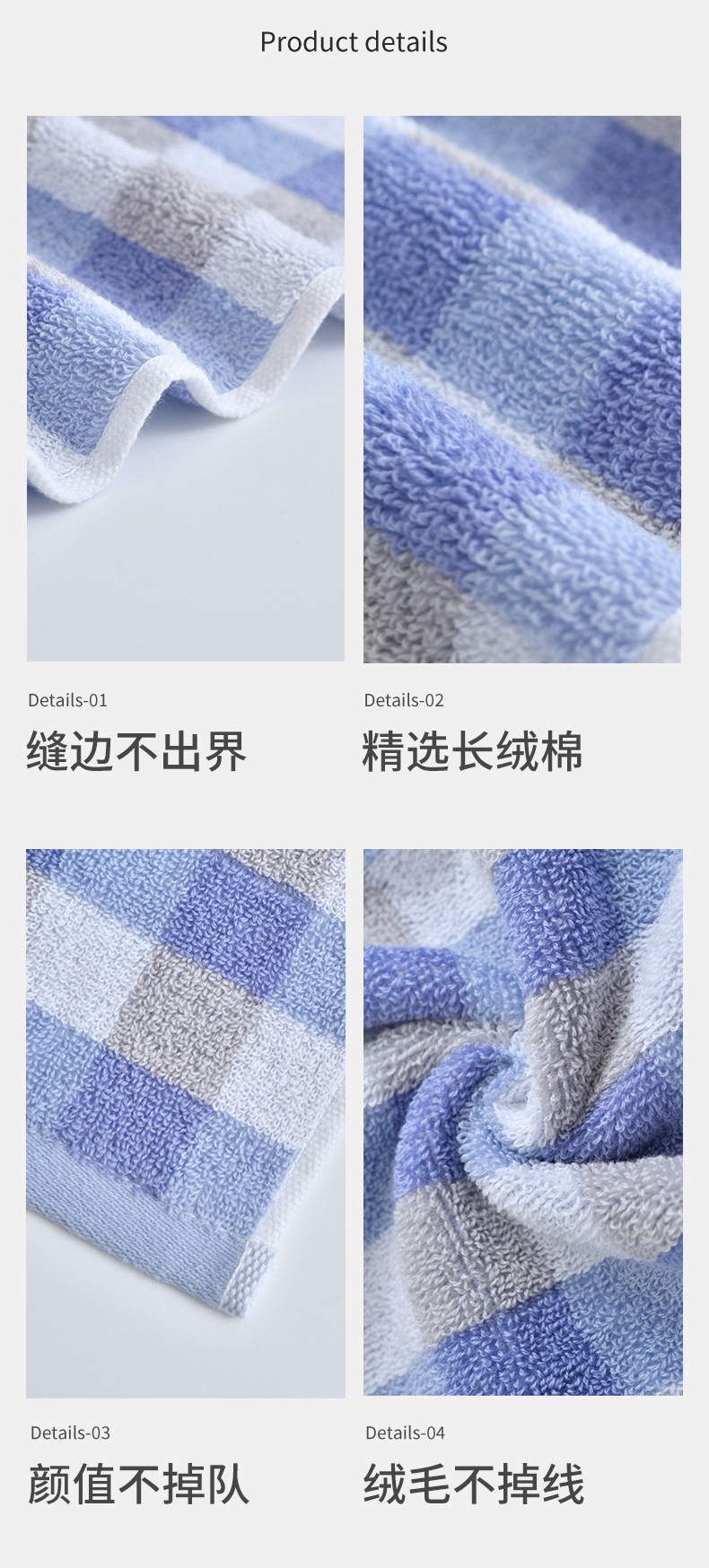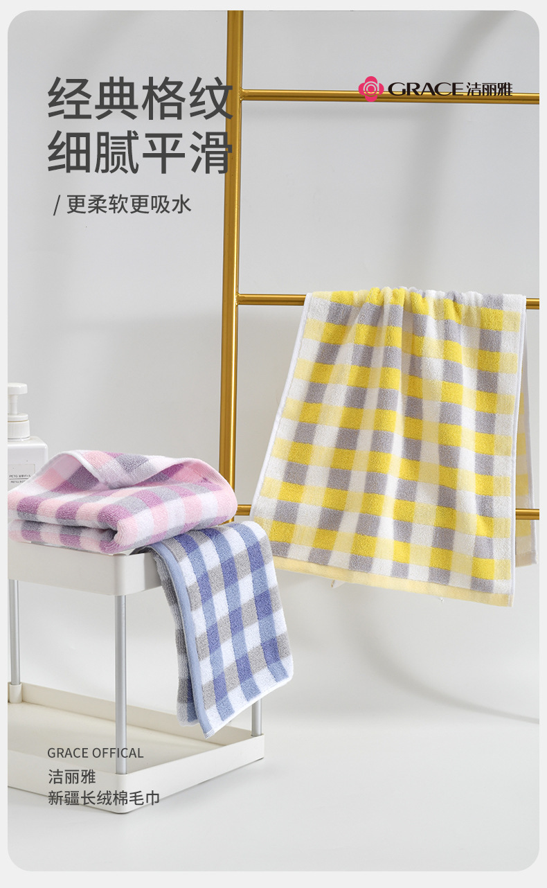 Jieliya 210043 순면 수건 부드러운 흡수 격자 무늬 성인 남녀 커플 가정용 목욕 얼굴 수건스토어 가기