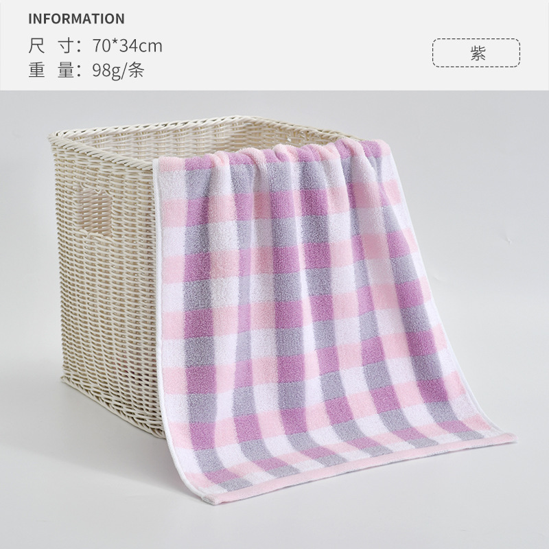 Jieliya 210043 순면 수건 부드러운 흡수 격자 무늬 성인 남녀 커플 가정용 목욕 얼굴 수건