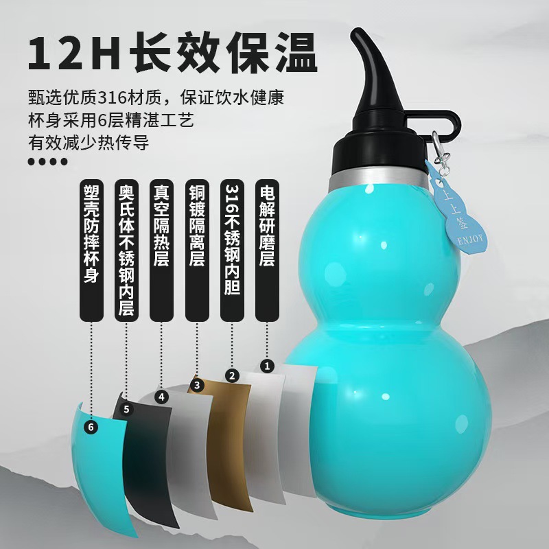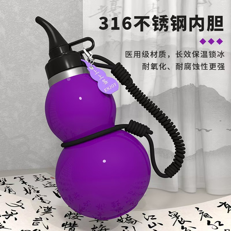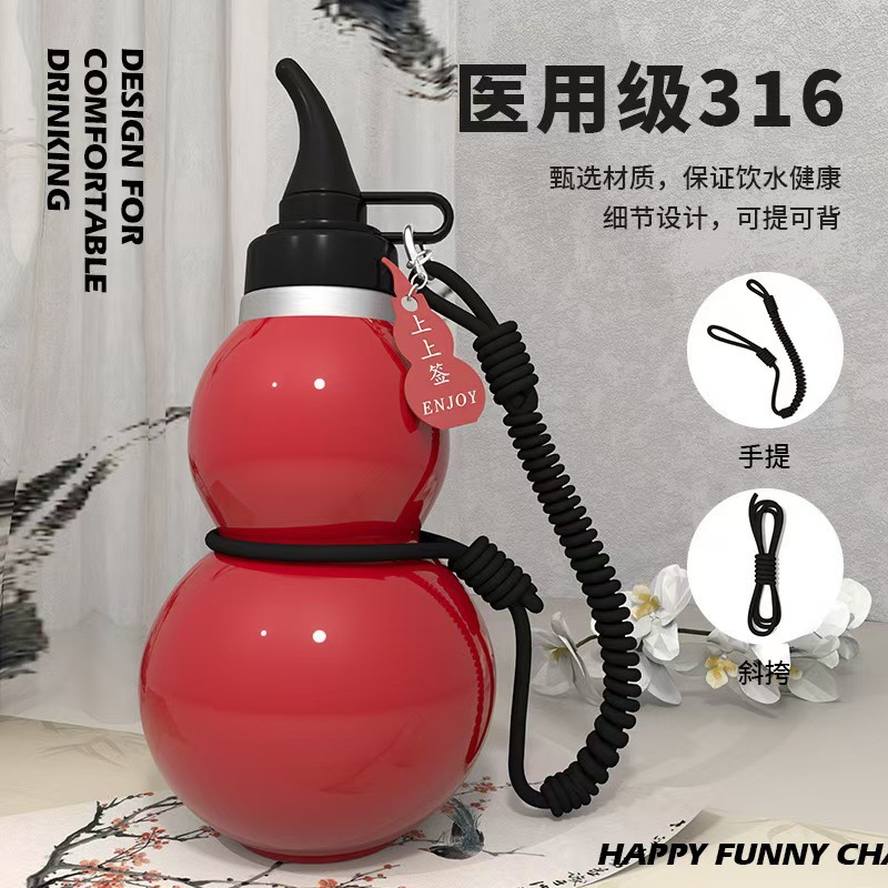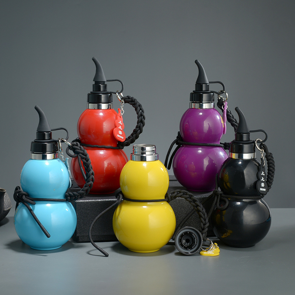 ✅중국 스타일 조롱박 물 컵 맞춤형 스테인레스 스틸 대용량 스포츠 보온병 야외 휴대용 휴대용 스트랩 물