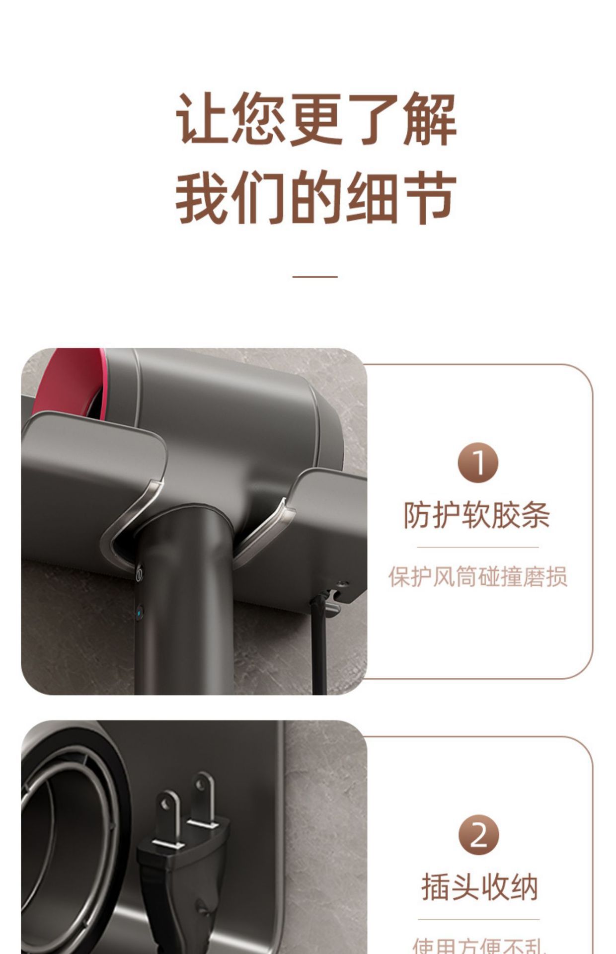 ✅헤어 드라이어 랙 천공되지 않은 가정용 다이슨 레핀 유니버설 충돌 방지 벽에 장착 된 모든 알루미늄 브래킷 저장 신스토어 가기