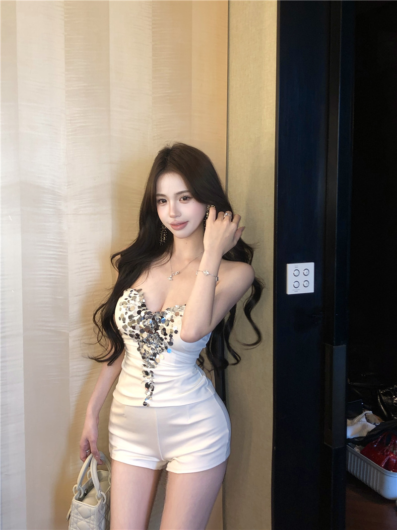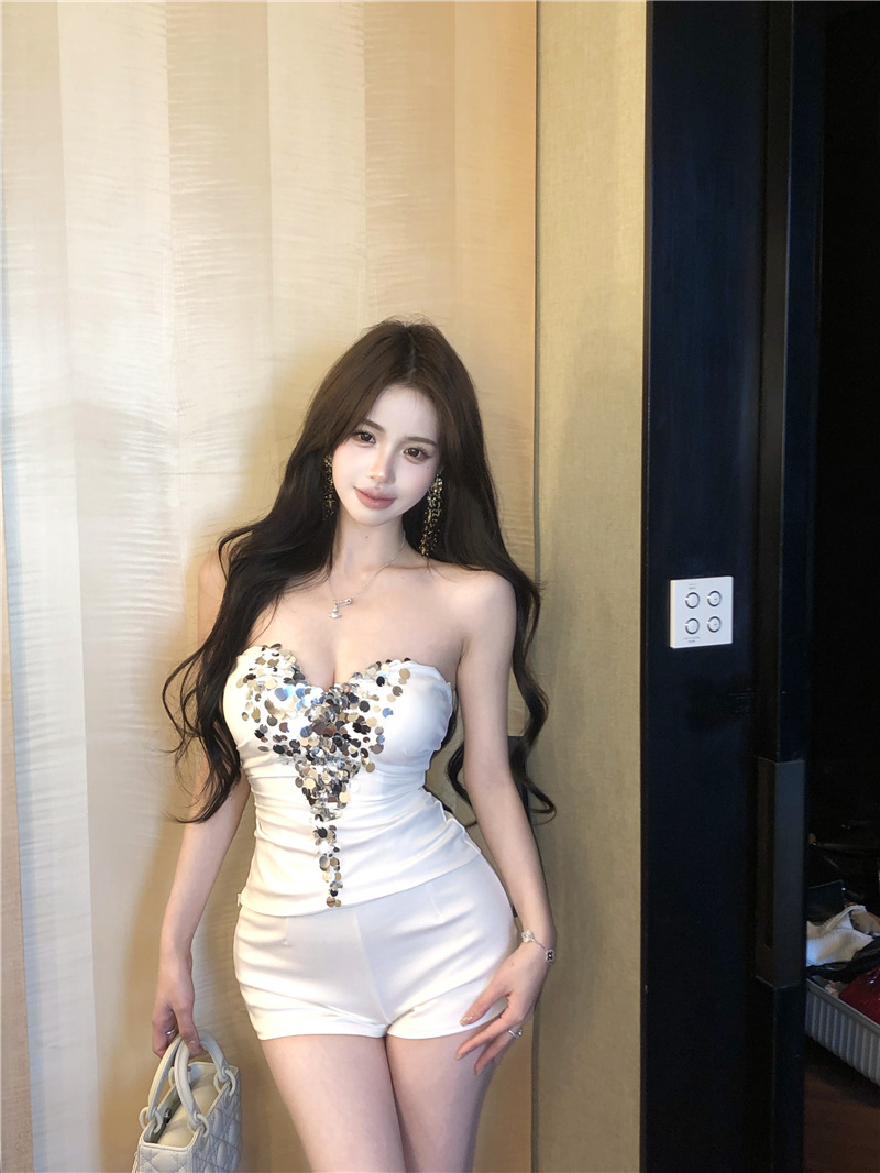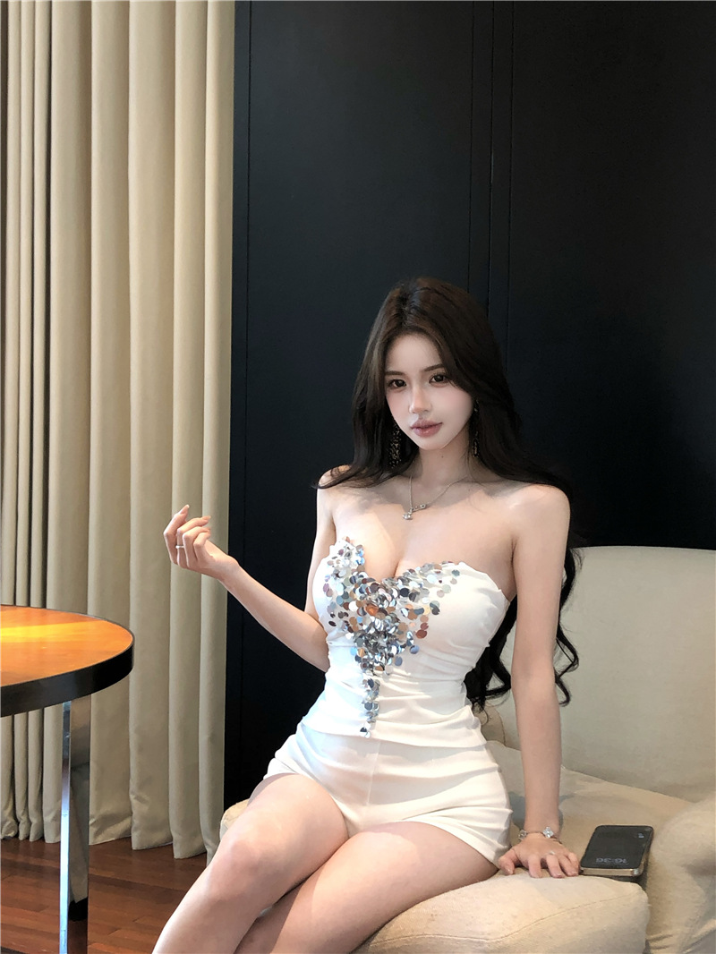진짜 샷 진짜 가격 ~ 섹시한 순수한 욕망 딸 스팽글 튜브 탑 싱글웨어 여성 자신의 가슴 패드스토어 가기
