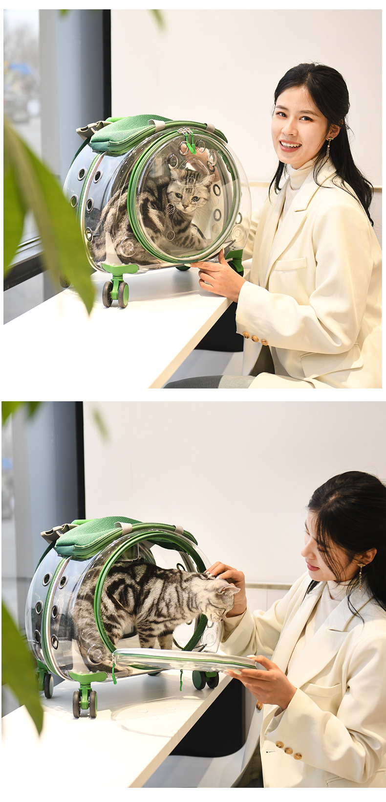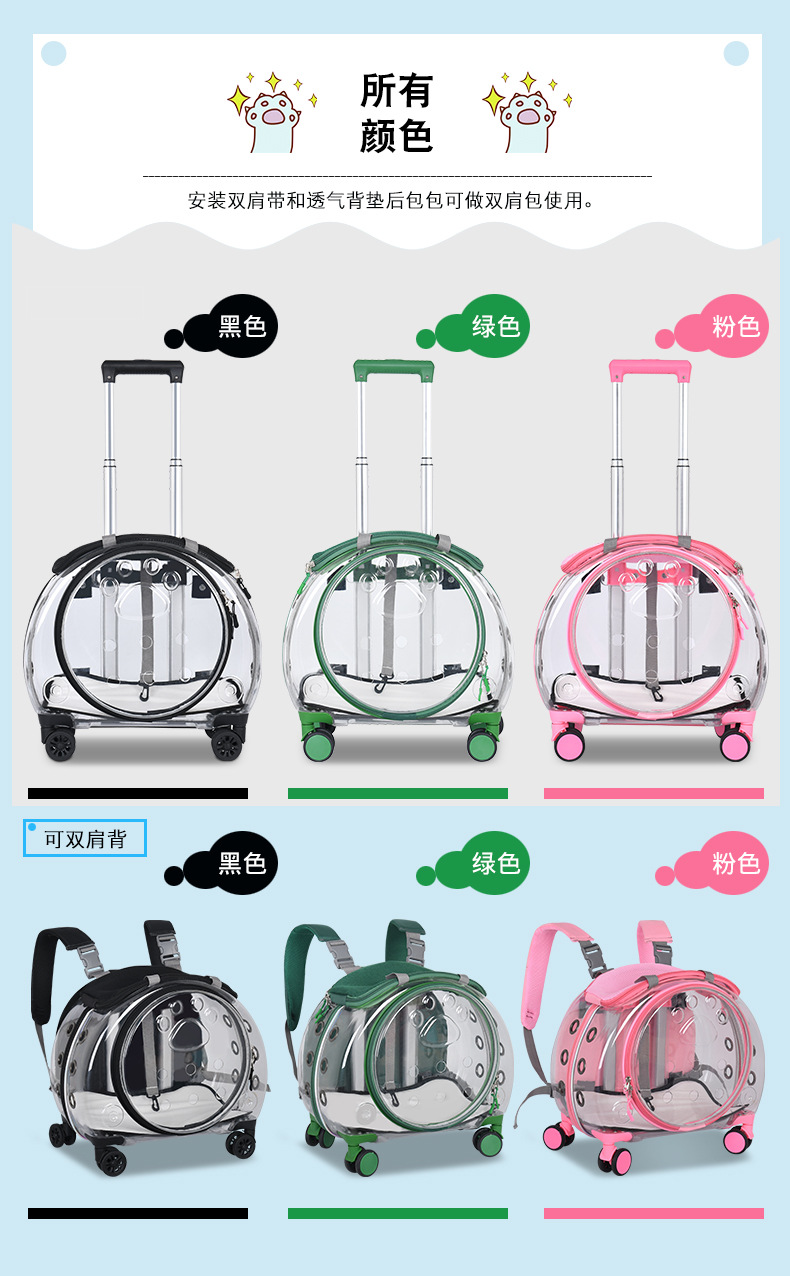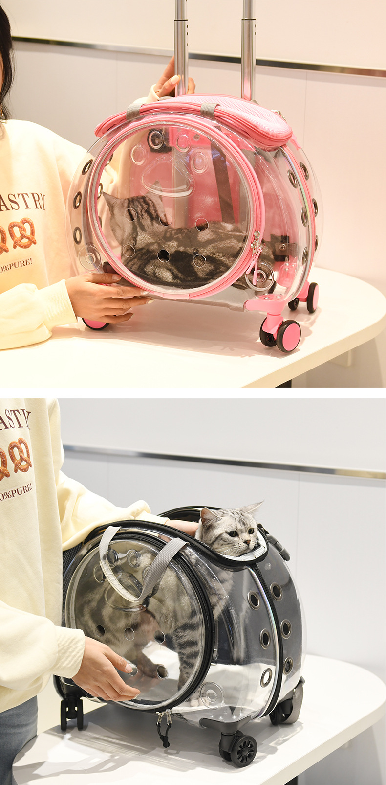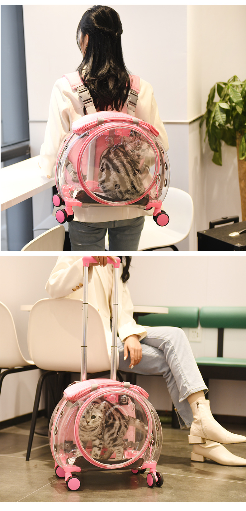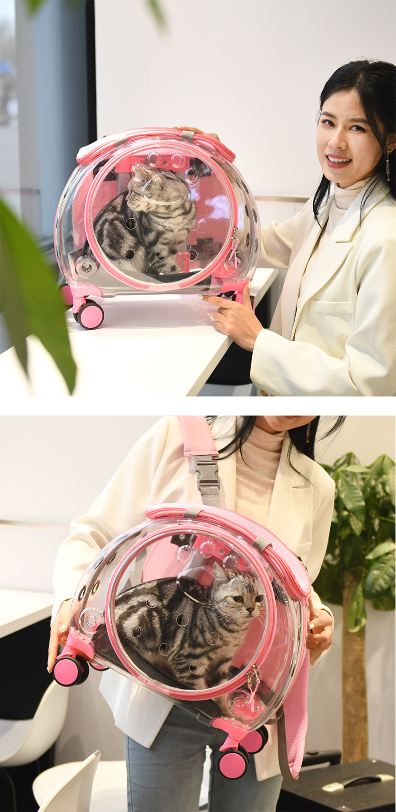 애완 동물 트롤리 케이스 투명한 고양이 가방 다목적 고양이 공간 캡슐 트롤리 케이스 백팩 나가는 애완 동물 가방