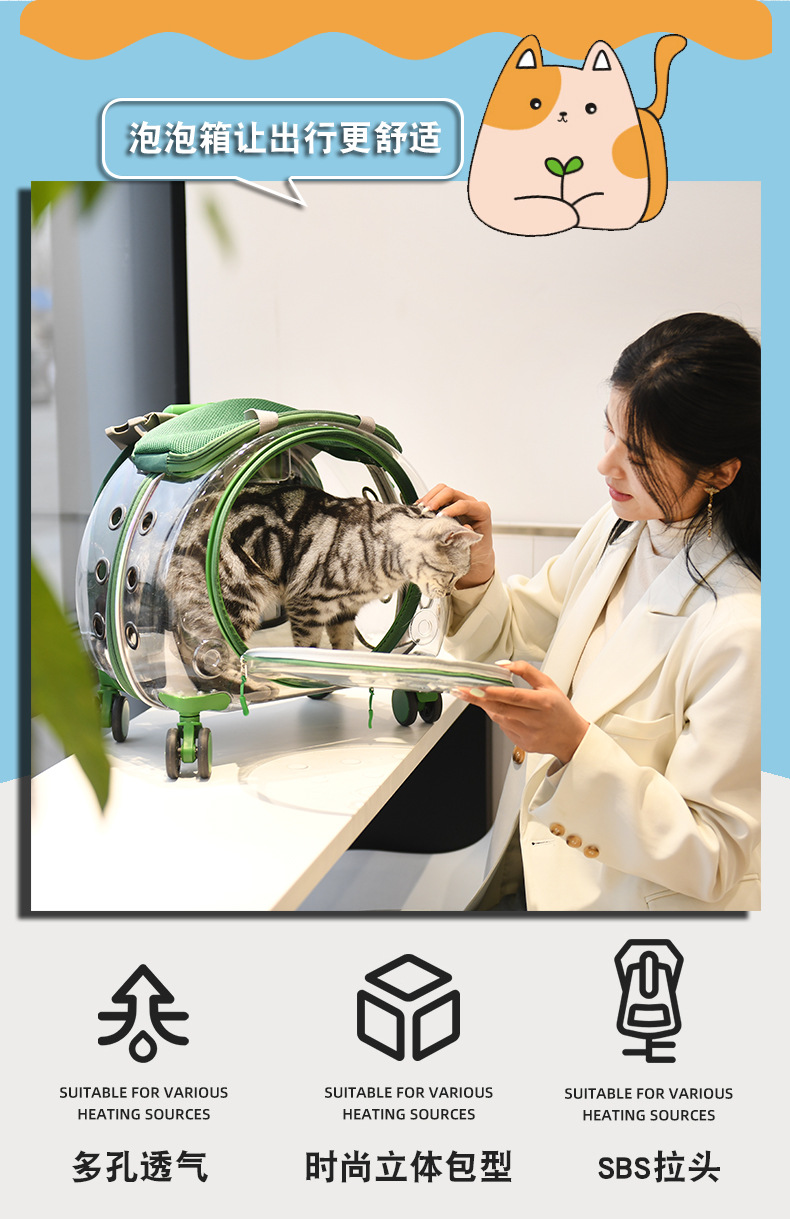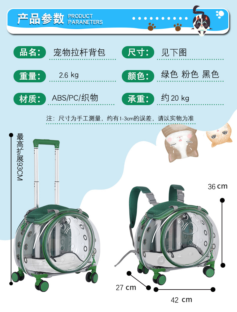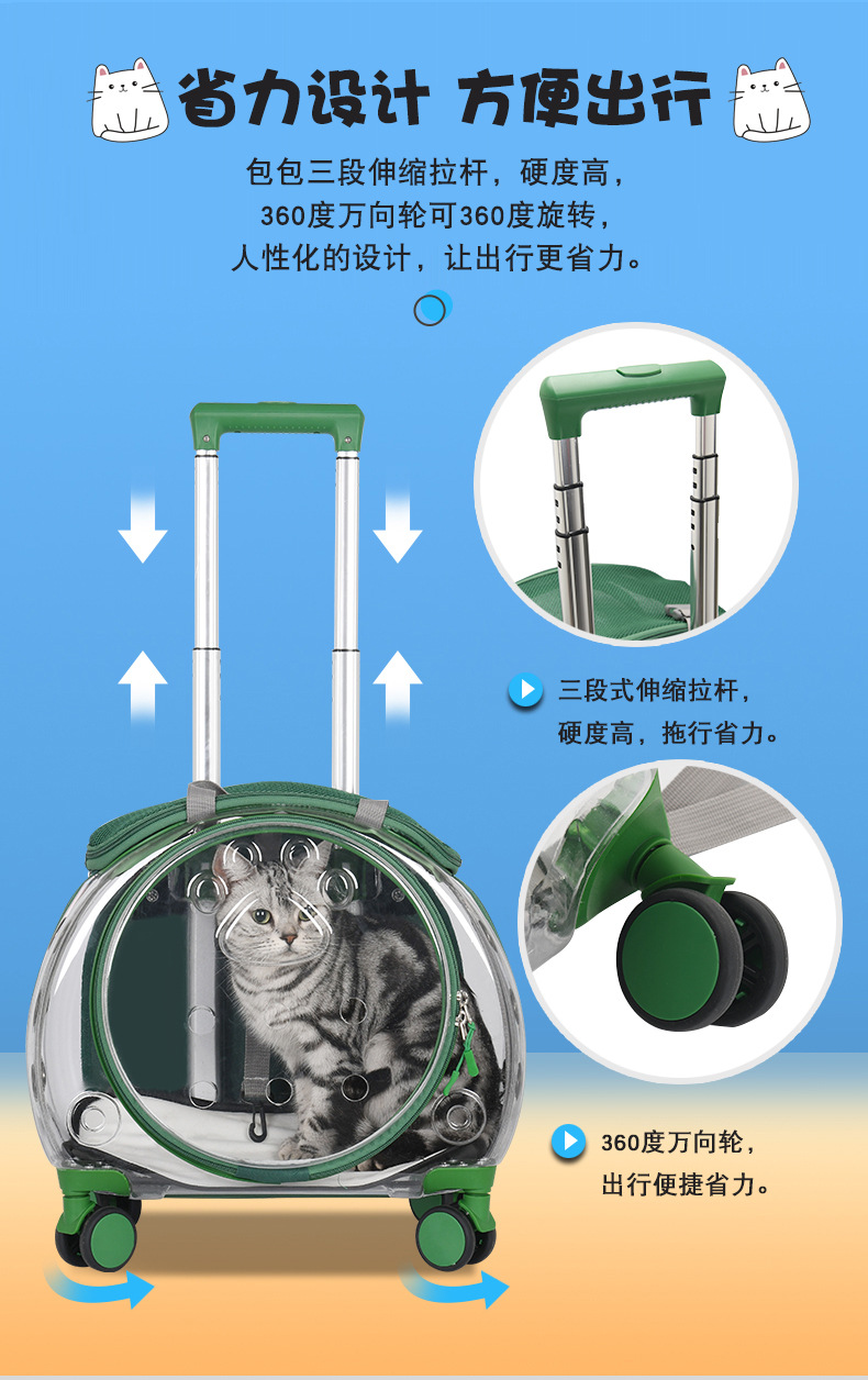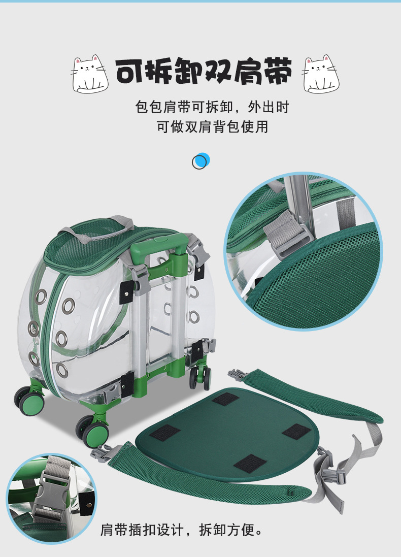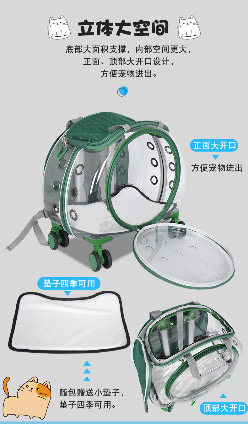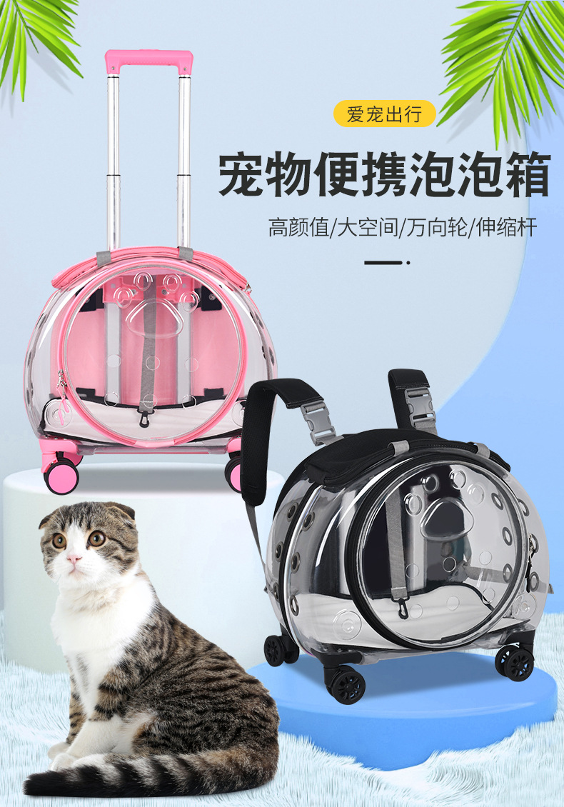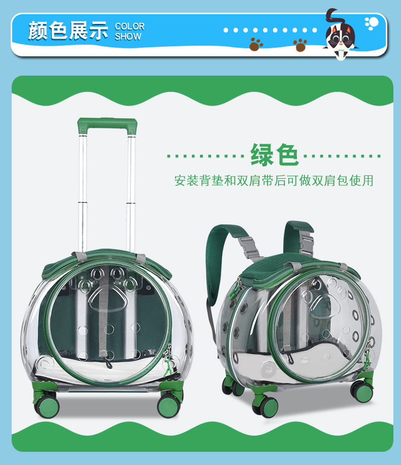 애완 동물 트롤리 케이스 투명한 고양이 가방 다목적 고양이 공간 캡슐 트롤리 케이스 백팩 나가는 애완 동물 가방