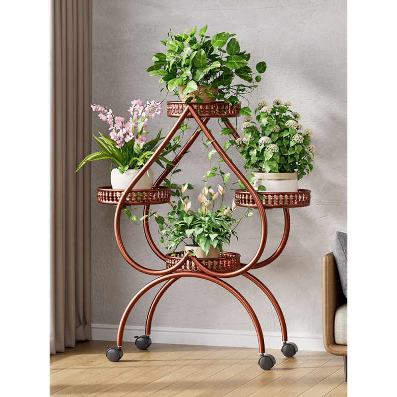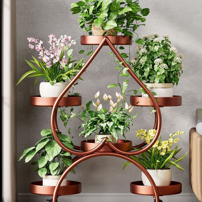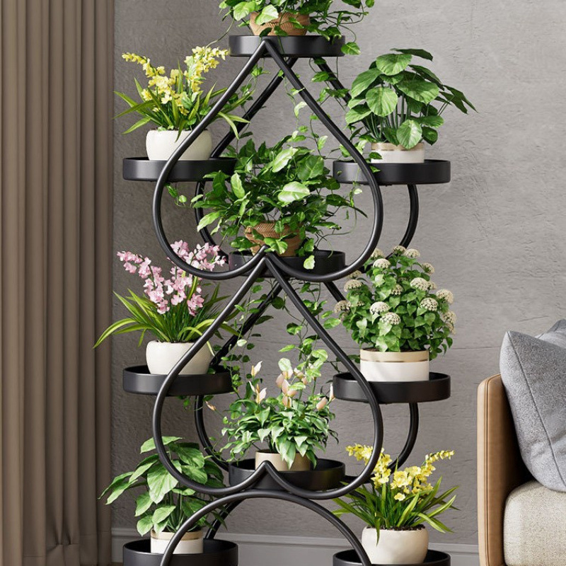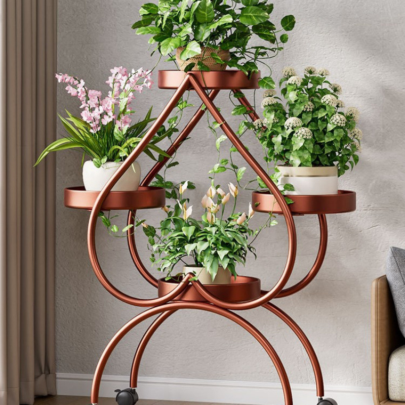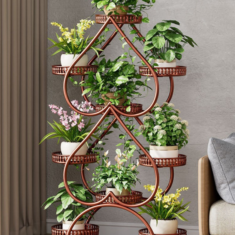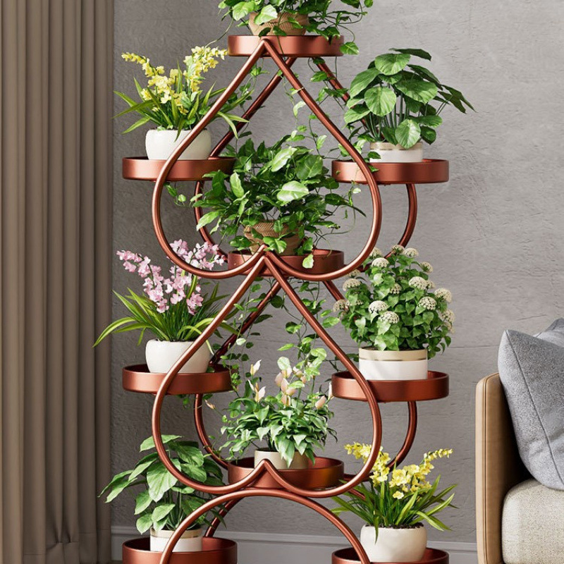 꽃 선반 거실 바닥 스탠딩 스토리지 랙 발코니 철 선반 2024 그린 로즈를위한 새로운 빛 럭셔리 꽃 냄비 브래킷