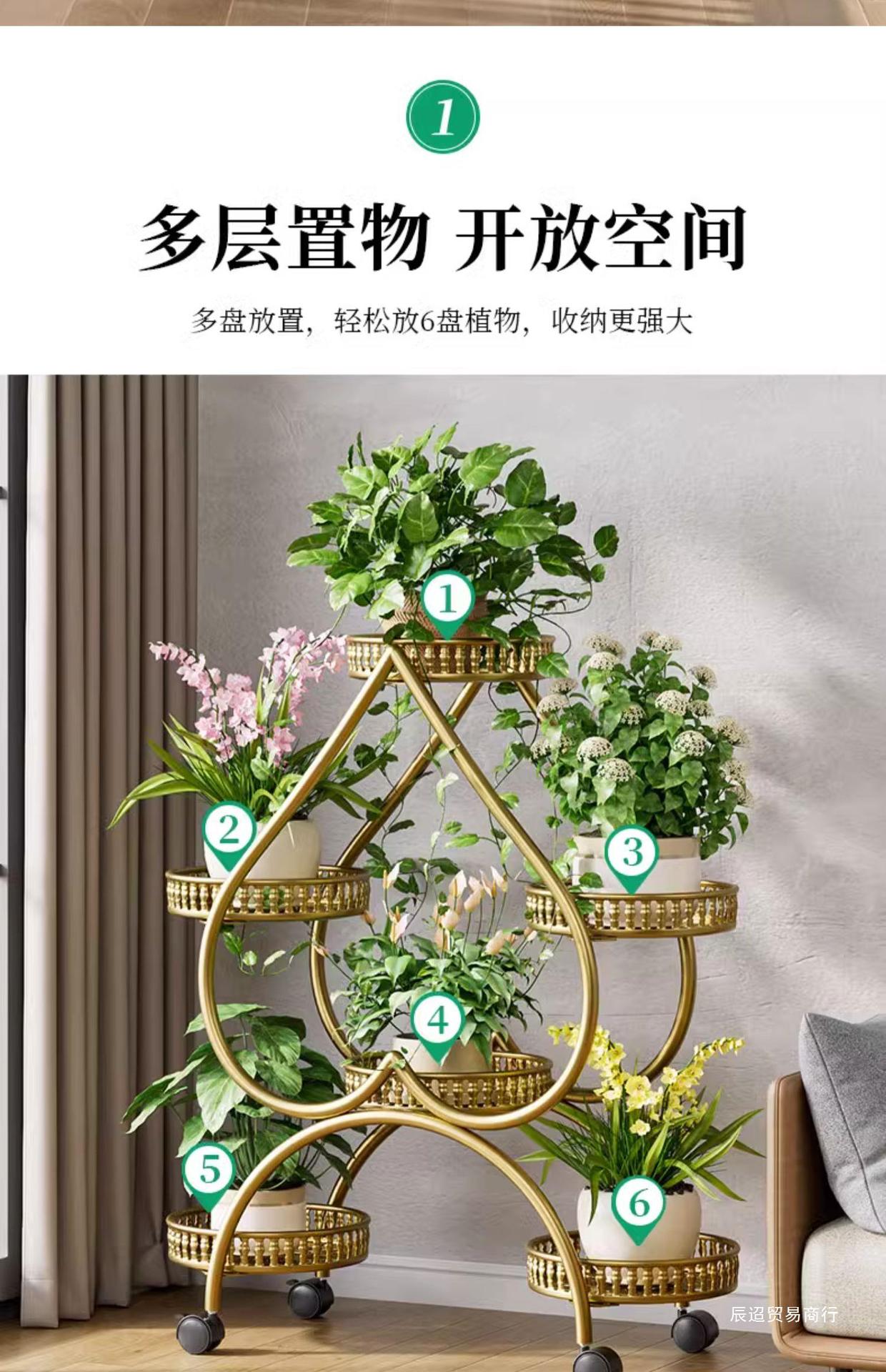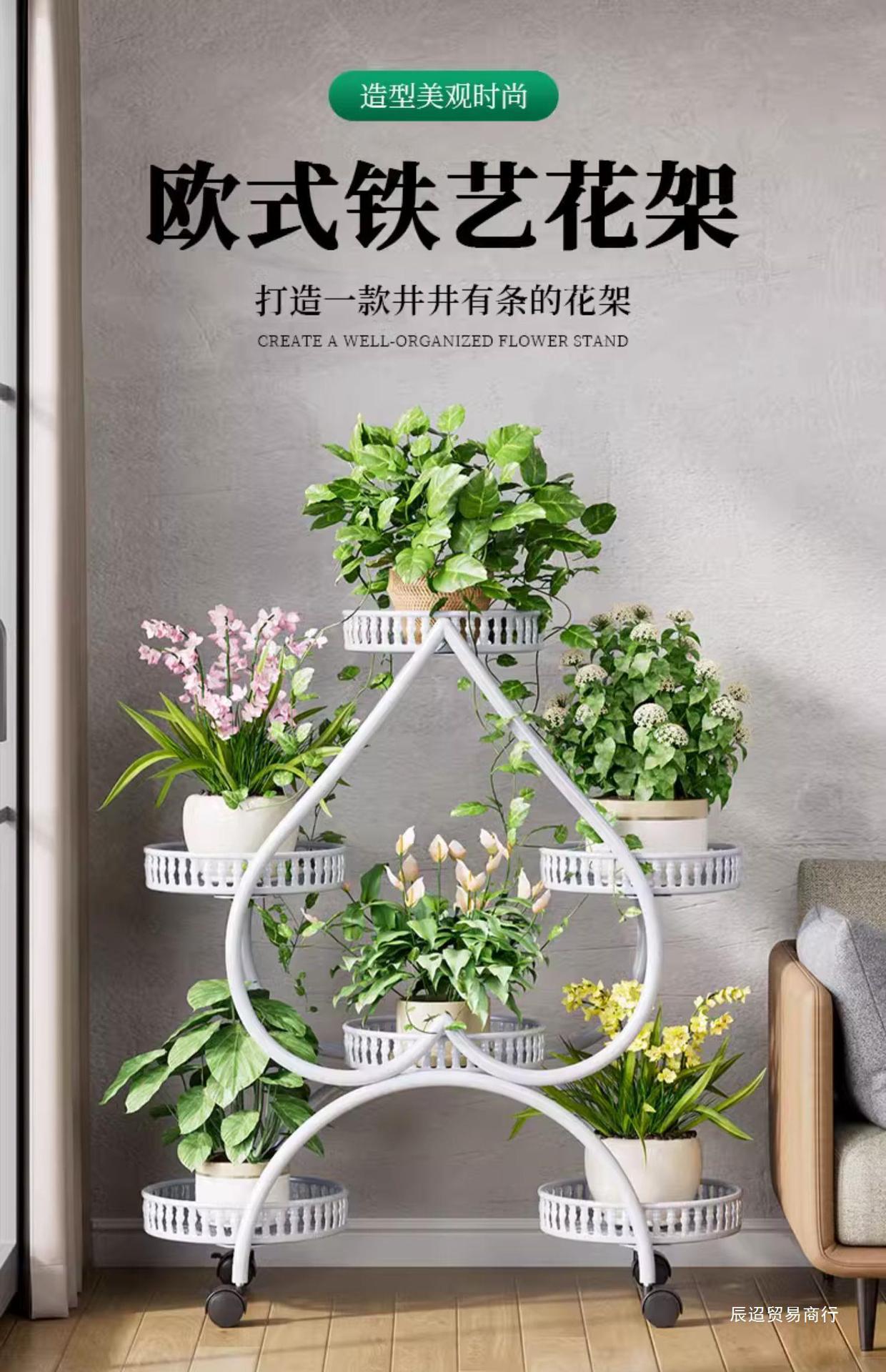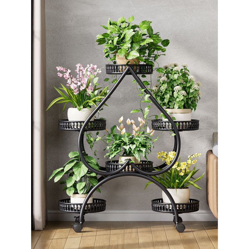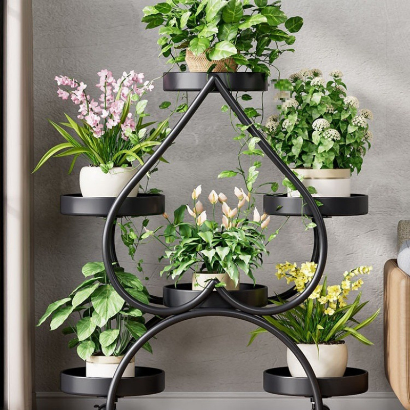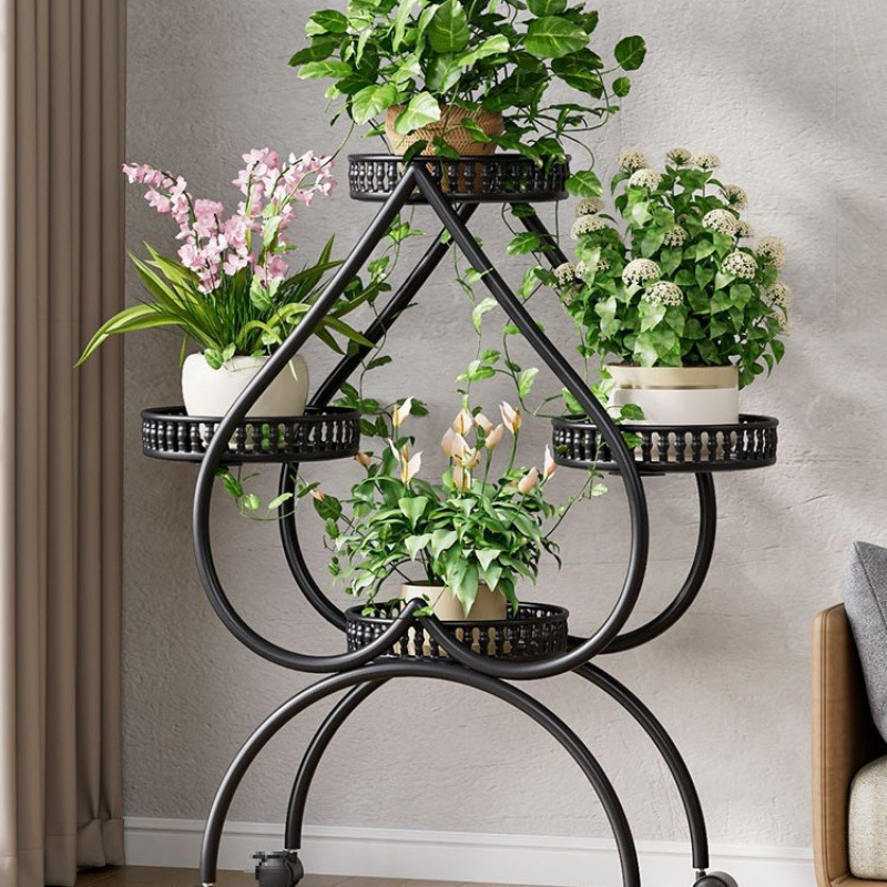 꽃 선반 거실 바닥 스탠딩 스토리지 랙 발코니 철 선반 2024 그린 로즈를위한 새로운 빛 럭셔리 꽃 냄비 브래킷