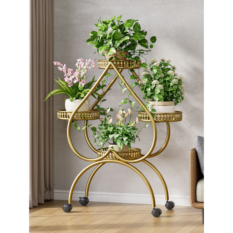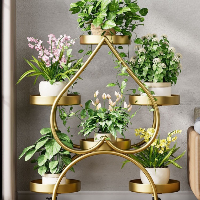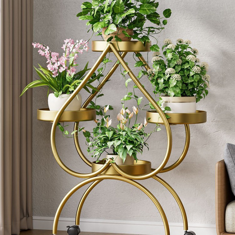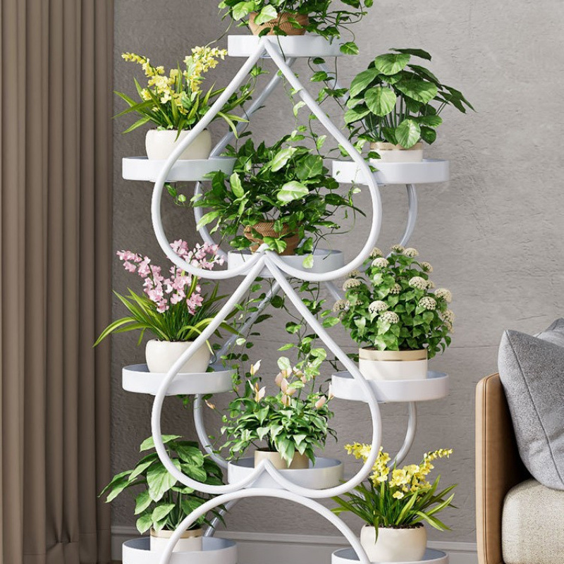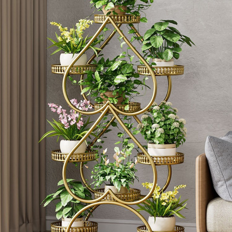 꽃 선반 거실 바닥 스탠딩 스토리지 랙 발코니 철 선반 2024 그린 로즈를위한 새로운 빛 럭셔리 꽃 냄비 브래킷스토어 가기