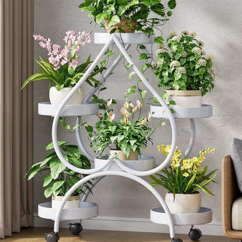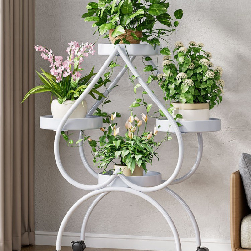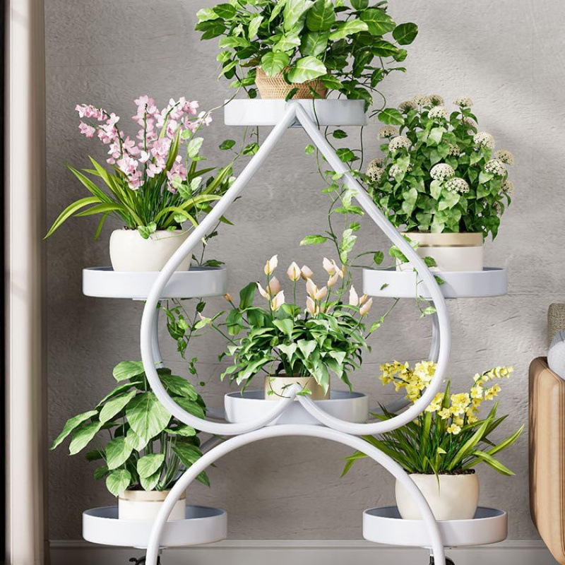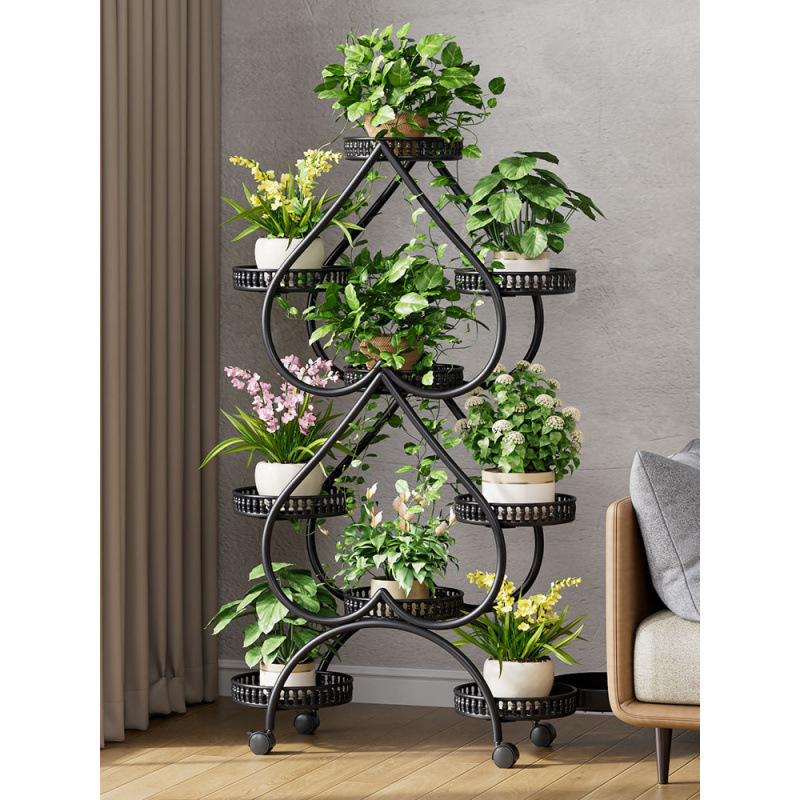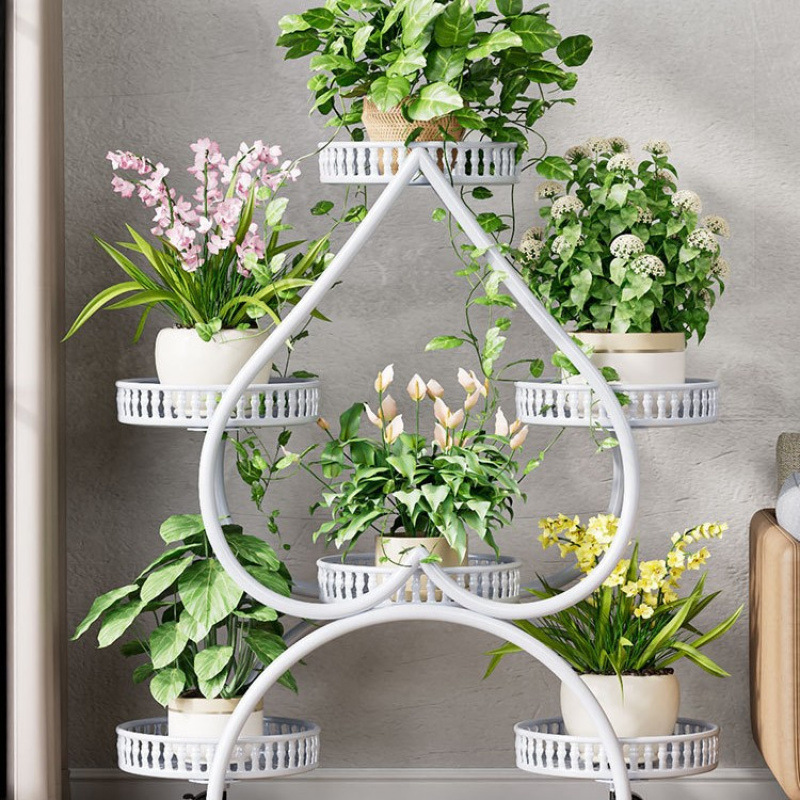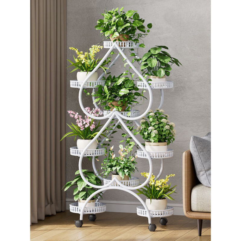 꽃 선반 거실 바닥 스탠딩 스토리지 랙 발코니 철 선반 2024 그린 로즈를위한 새로운 빛 럭셔리 꽃 냄비 브래킷스토어 가기