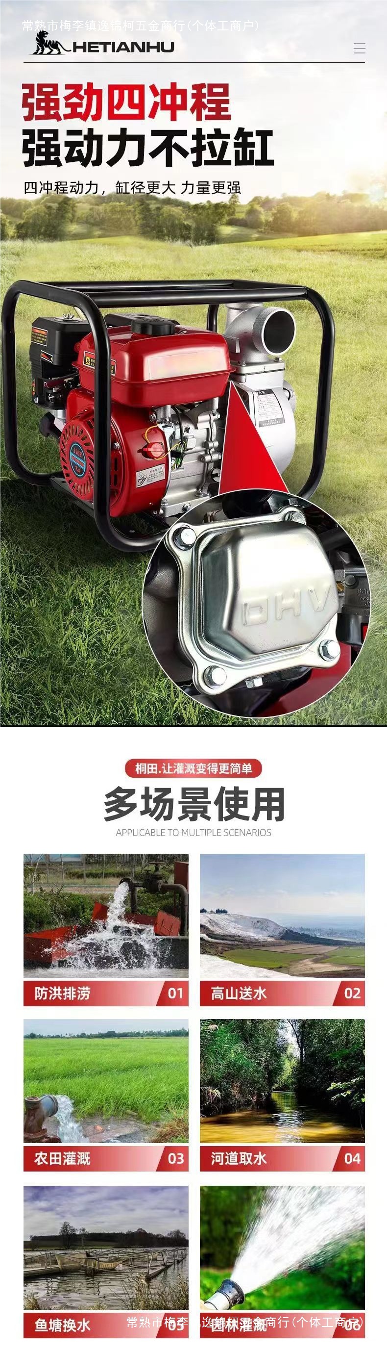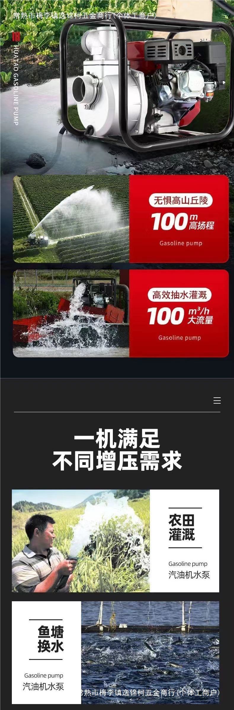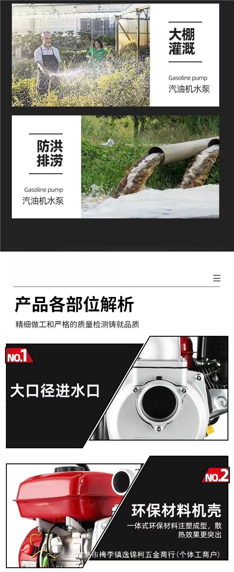 • 증가 4inch 가솔린 엔진 (대형 연료 탱크 및 대형 펌프 본체) + 표준 구성 + 3m 강선 물 유입 파이프 + 3