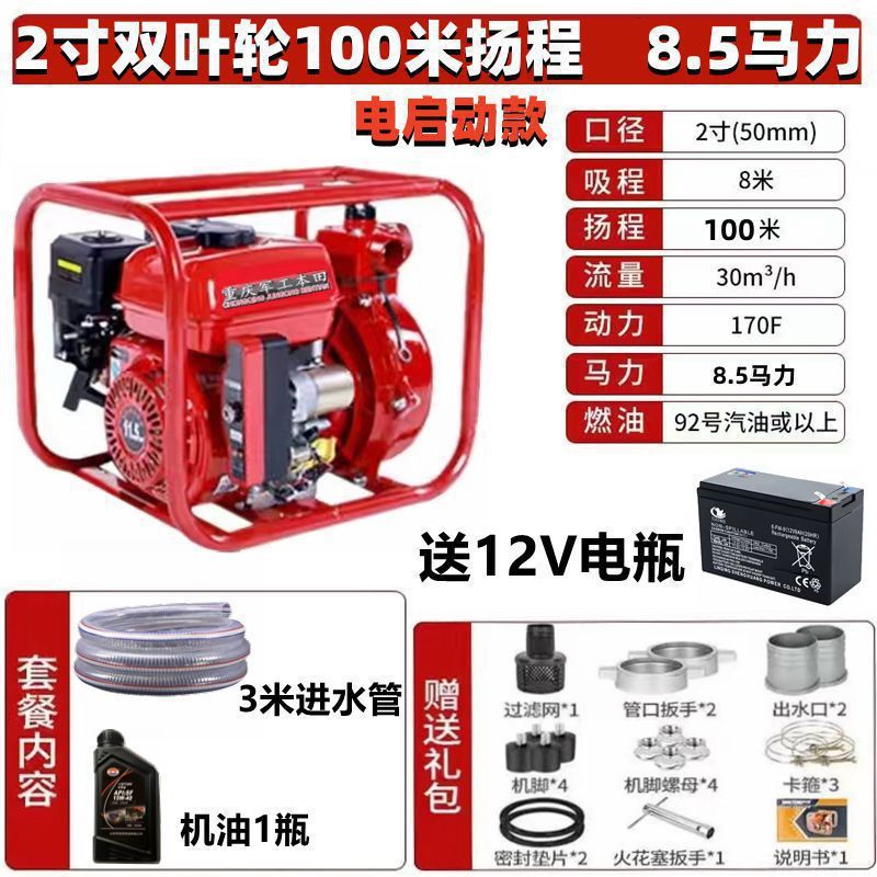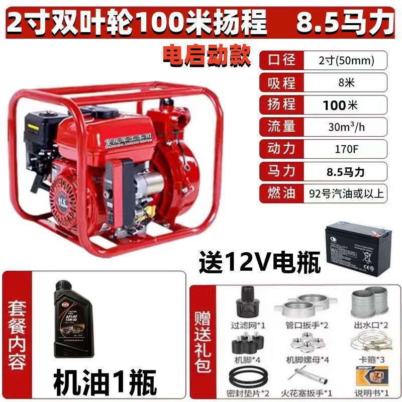 • (전기 시동 모델) 2inch 더블 임펠러(8.5마력) + 표준 구성 + 3m 강철 와이어 물 유입구