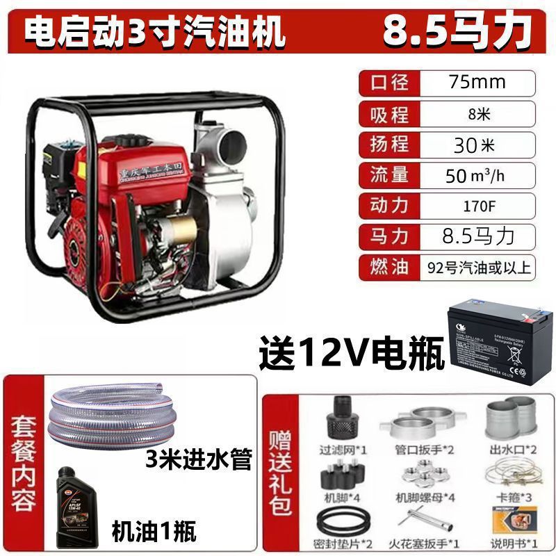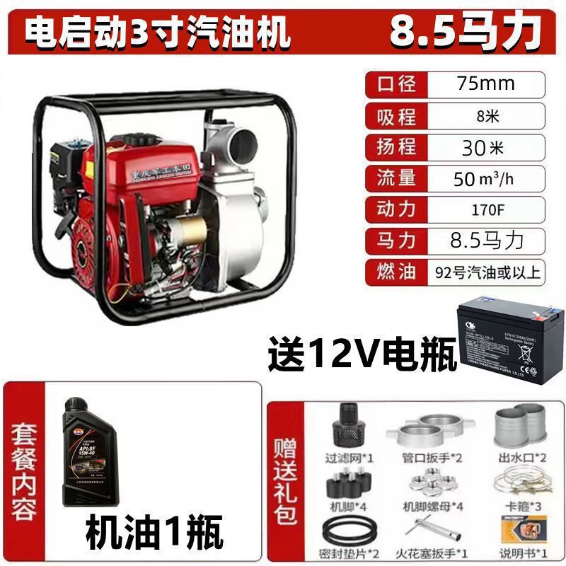 • (전기 시동 모델) 3inch 가솔린 엔진(8.5마력) + 공장 표준 구성(오일 포함)