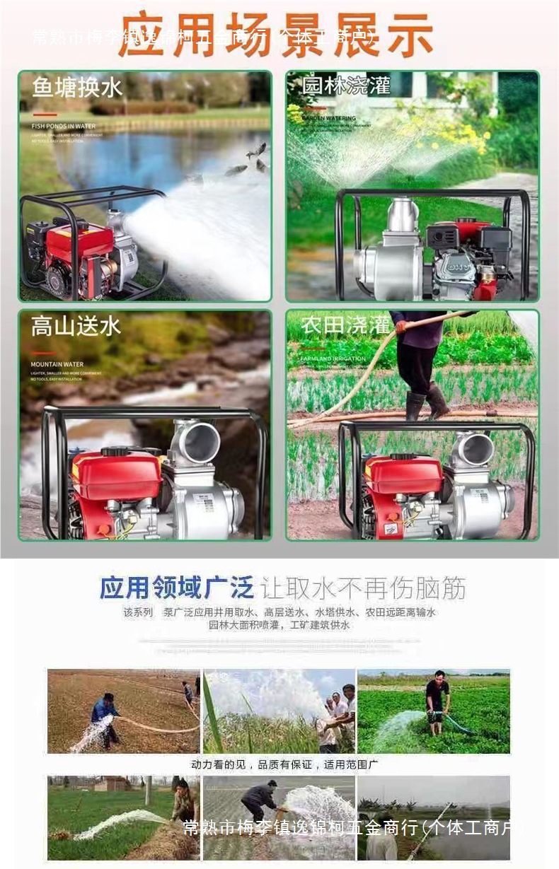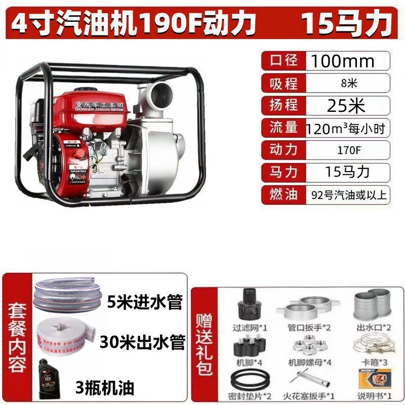 • 증가 4inch 가솔린 엔진 (대형 연료 탱크 및 대형 펌프 본체) + 표준 구성 + 5m 강선 물 유입 파이프 +5
