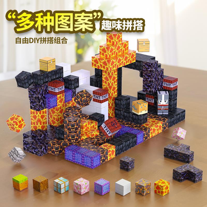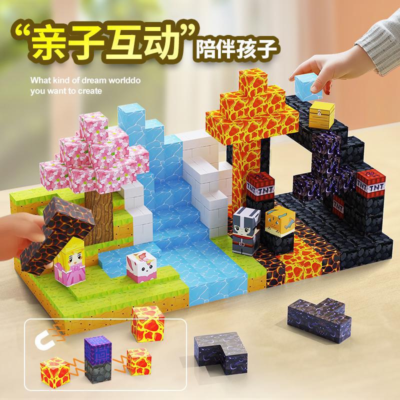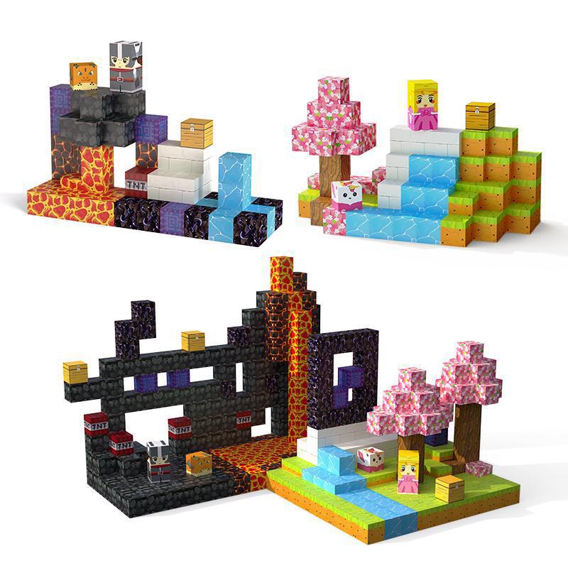 국경 간 마인 크래프트 마그네틱 블록 장면 빌딩 블록 조립 장난감 원시 숲 MC 미니 세계 도매스토어 가기