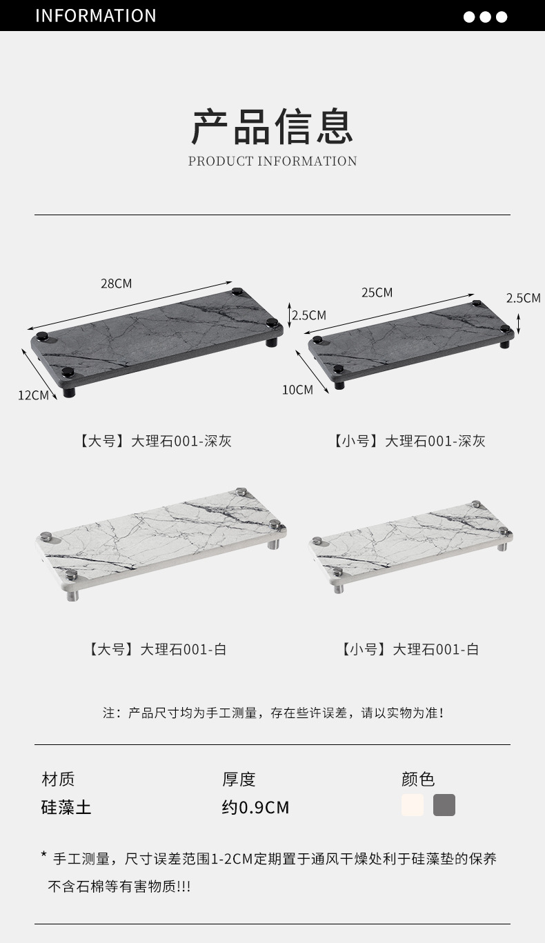 대리석 규조토 진흙 보관함 주방 싱크대 흡수 패드 욕실 세면대 보관 속건성 패드 공장스토어 가기