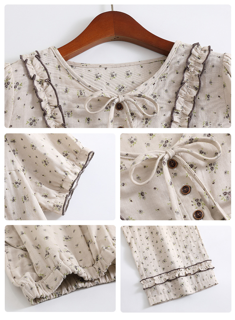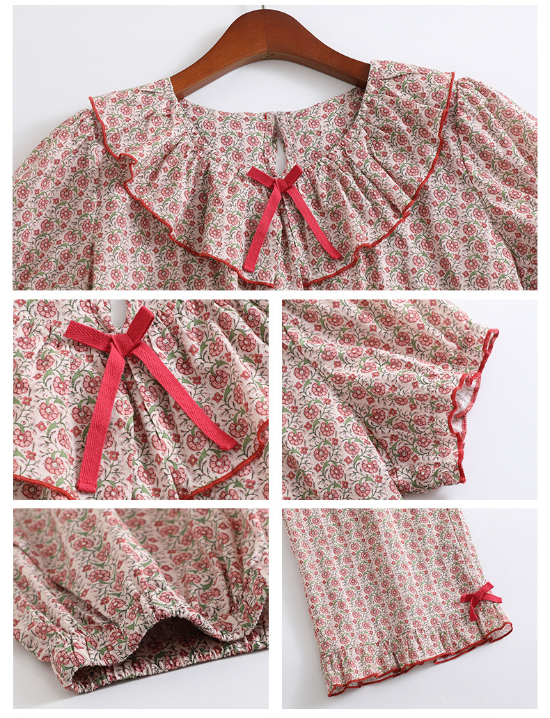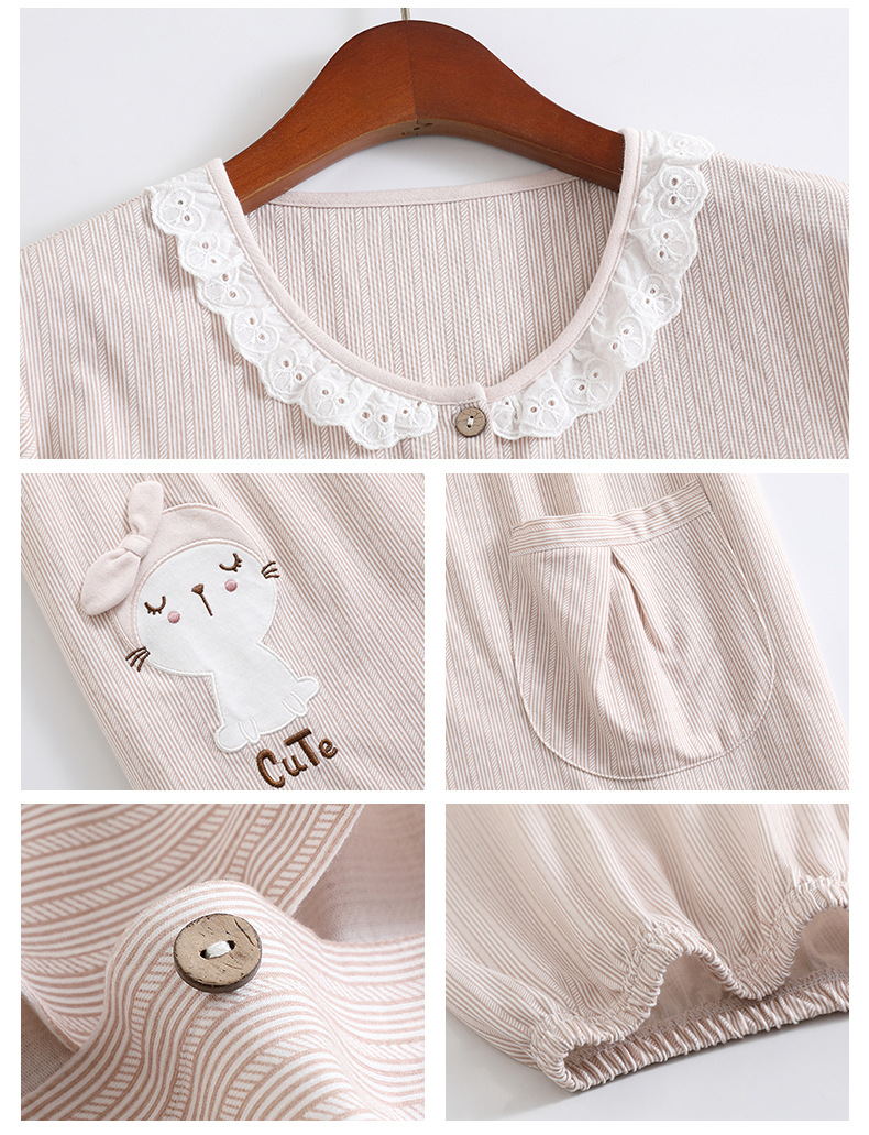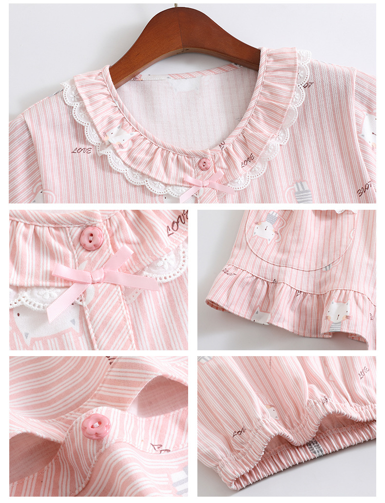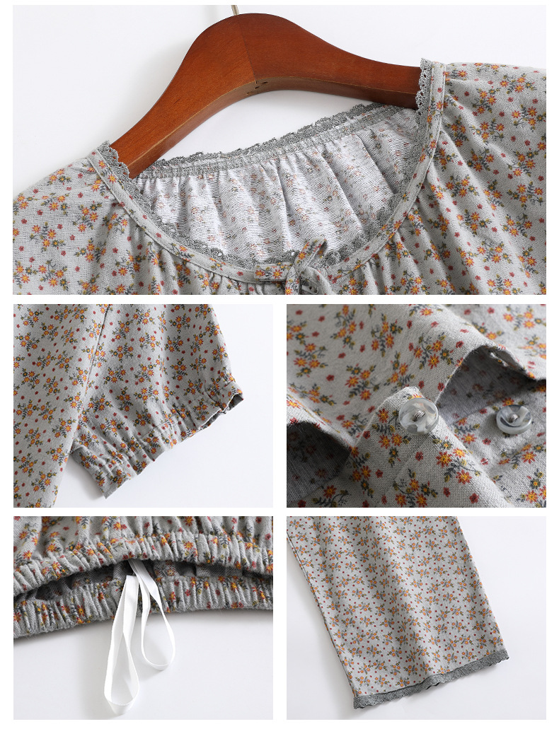 잠옷 여성 여름면 반팔 카프리 바지 중년 어머니 얇은 풀오버 면 느슨한 홈 의류 세트