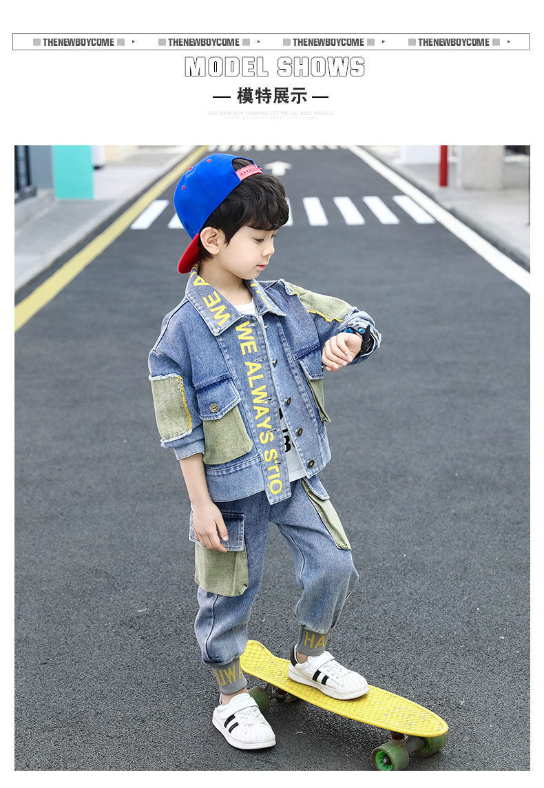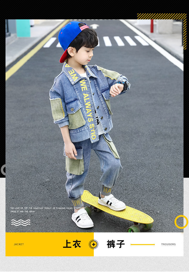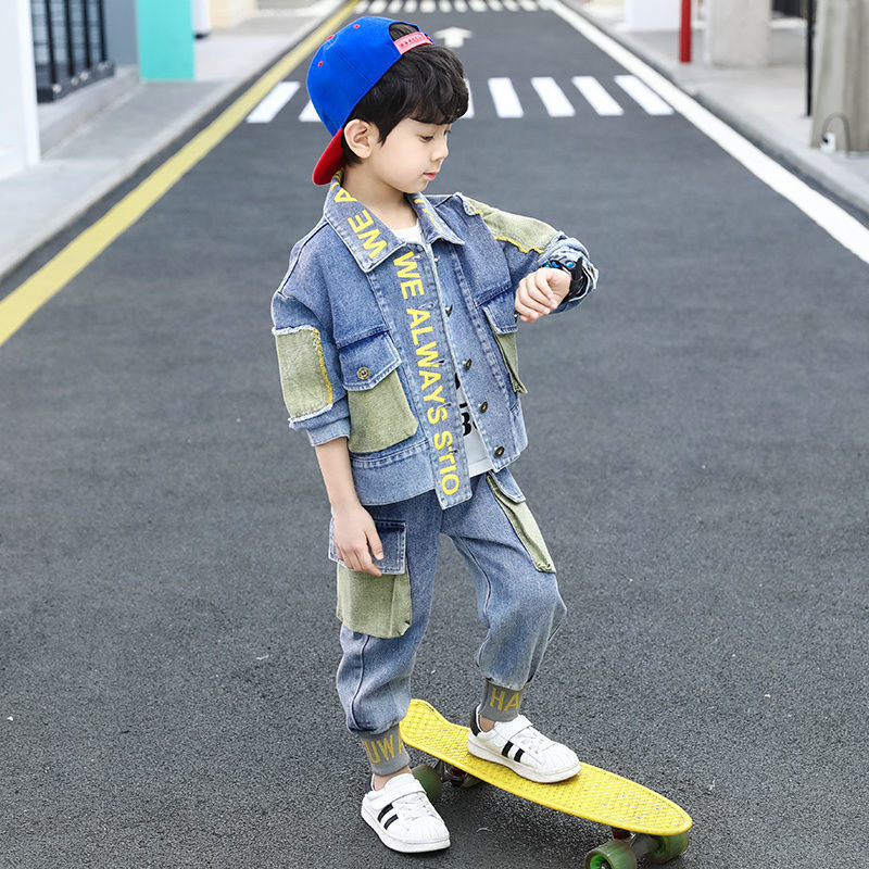 소년 가을 세트 어린이 잘 생긴 데님 2025 봄과 가을 새로운 어린이 서양식 소년 유행 유행 아동복스토어 가기