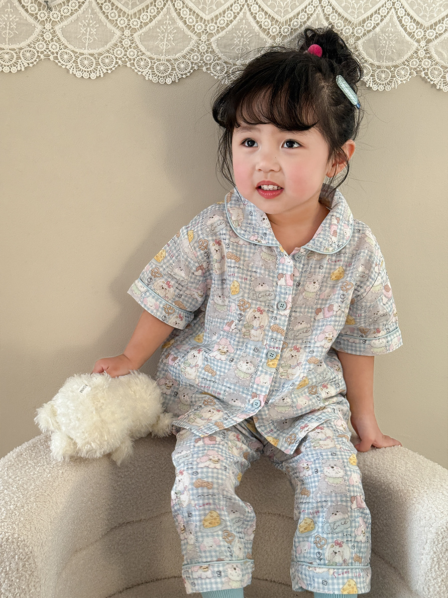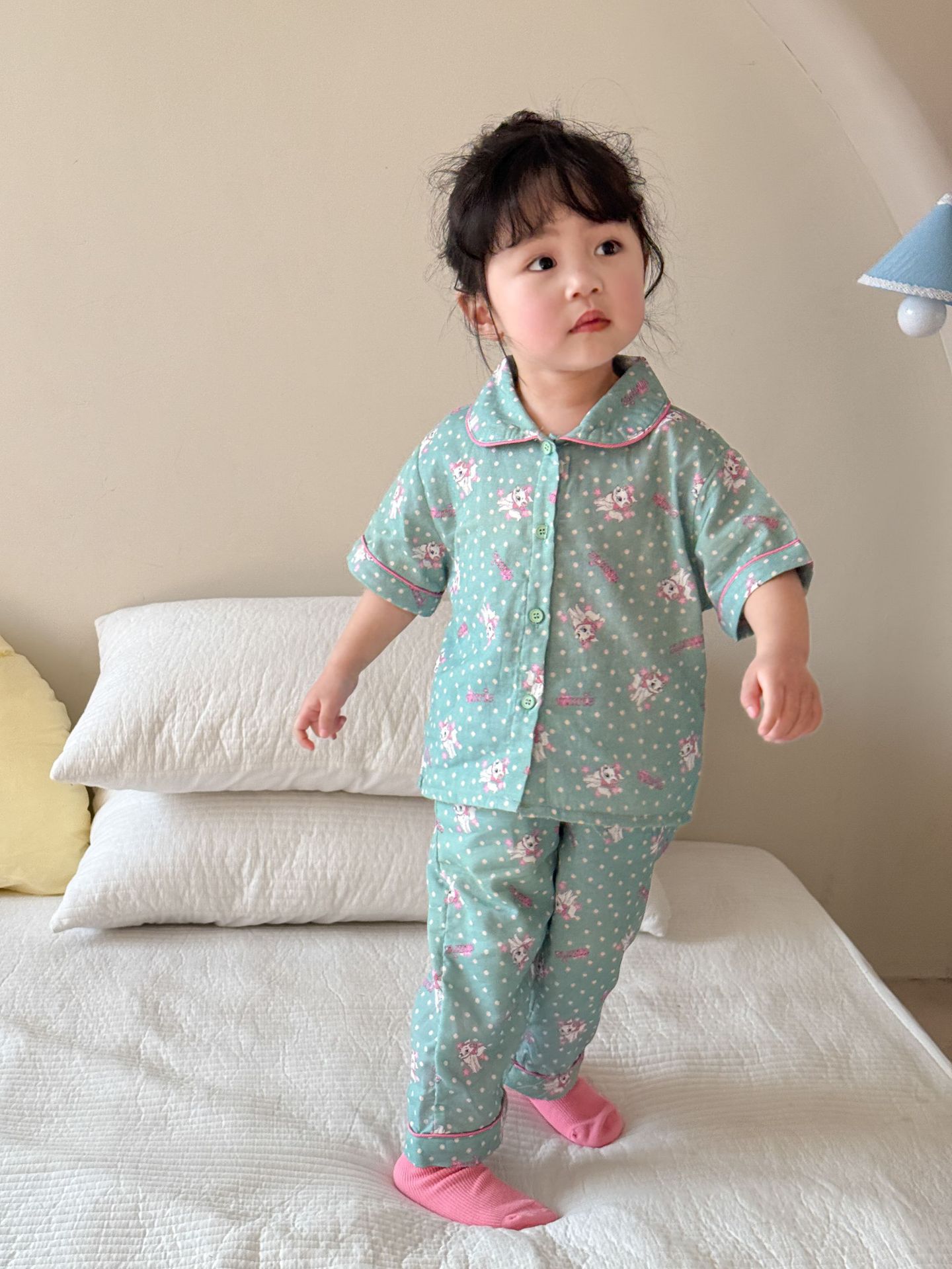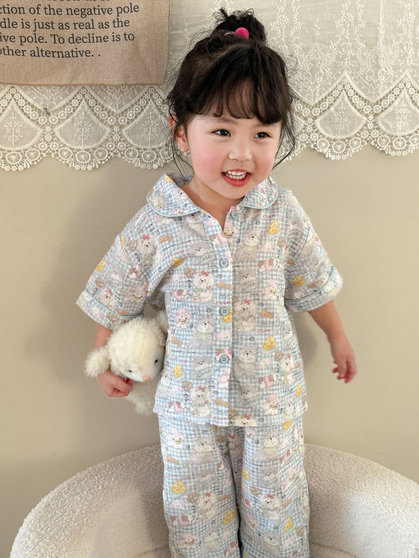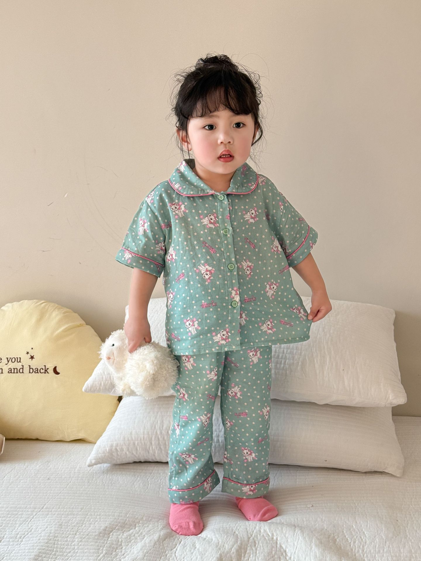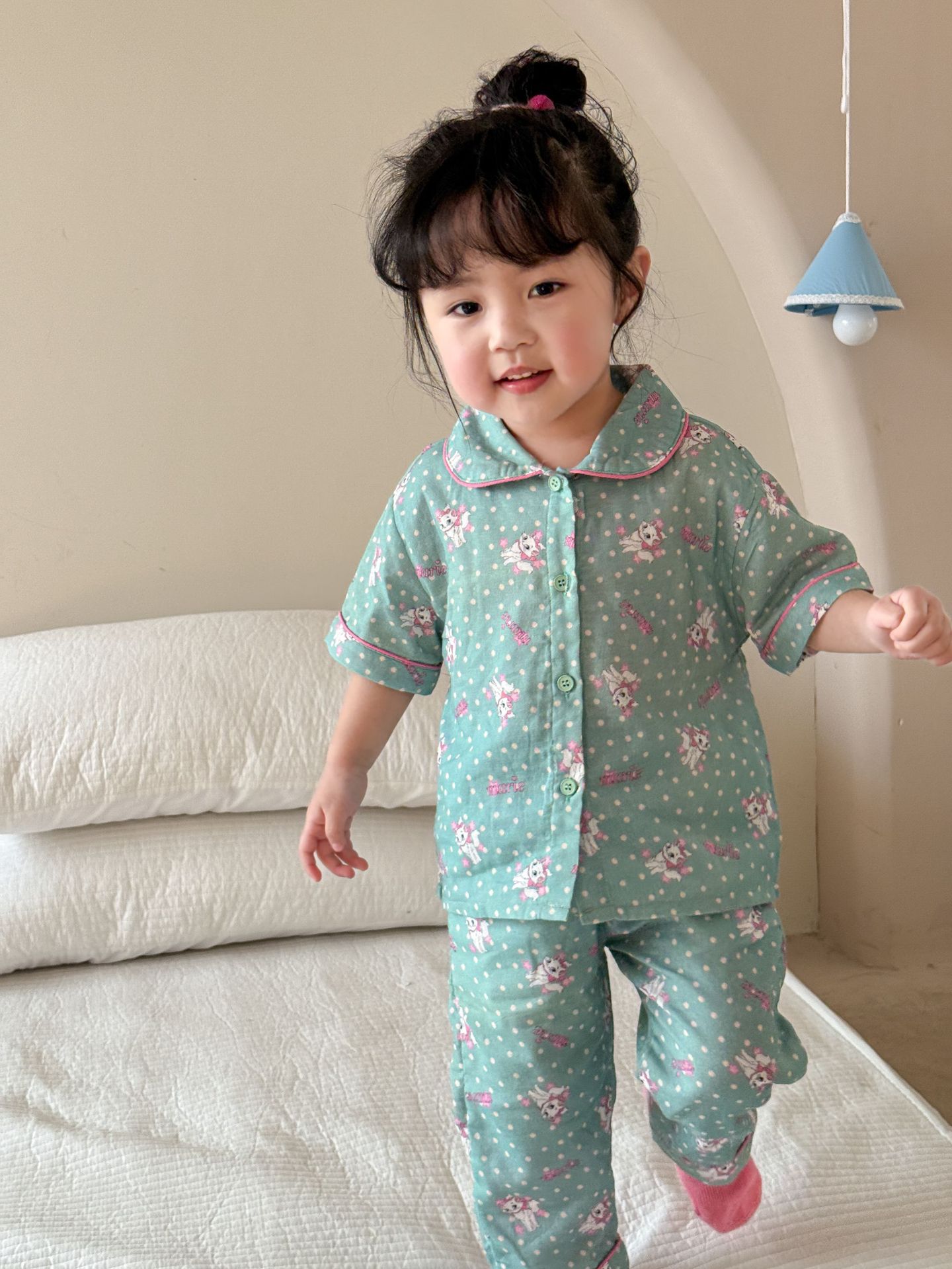 사탕 수수 배 아동복 소녀 가정복 세트 2025 봄 신입 아동복 A 통기성 거즈 아기 소녀 잠옷스토어 가기