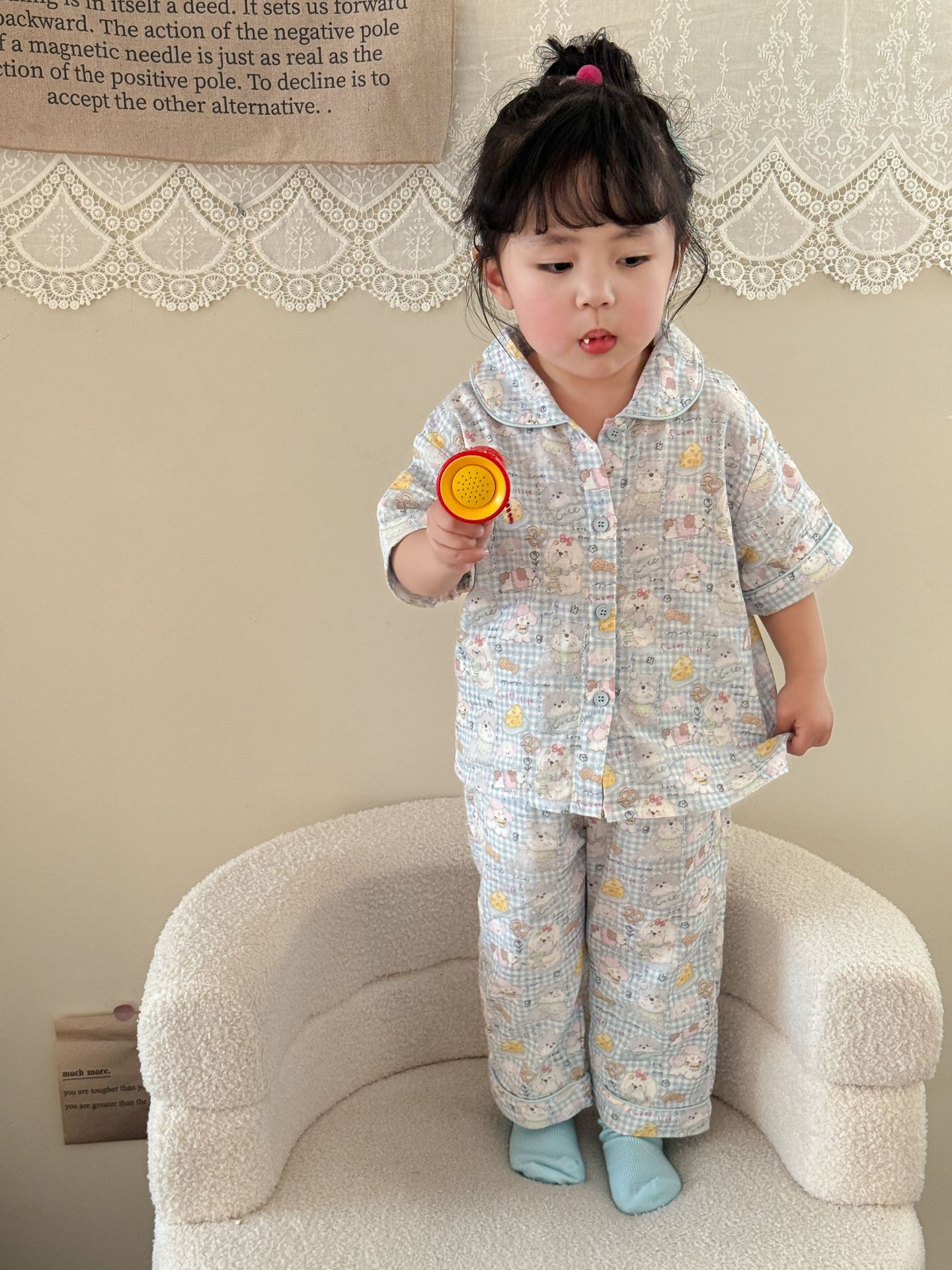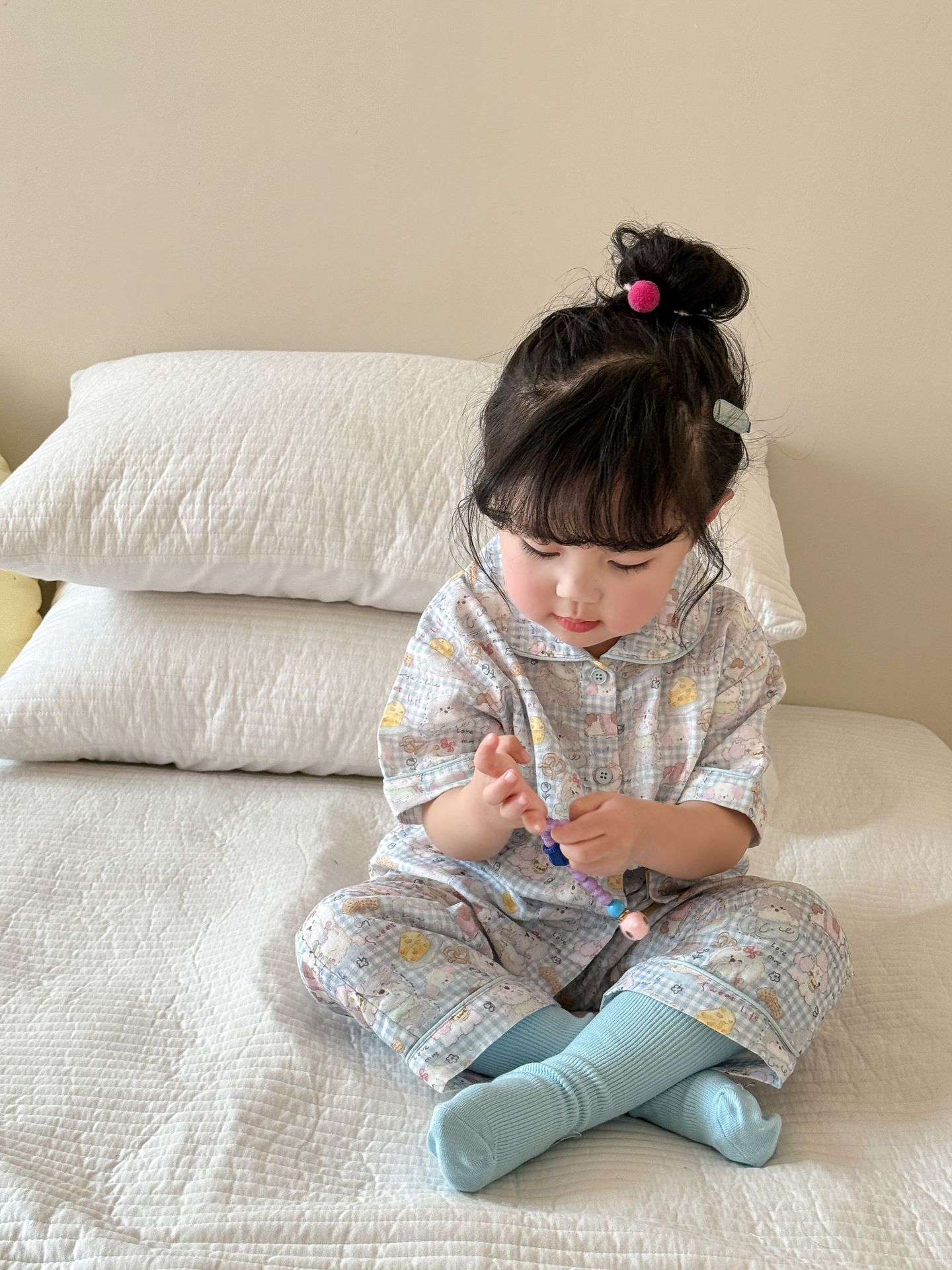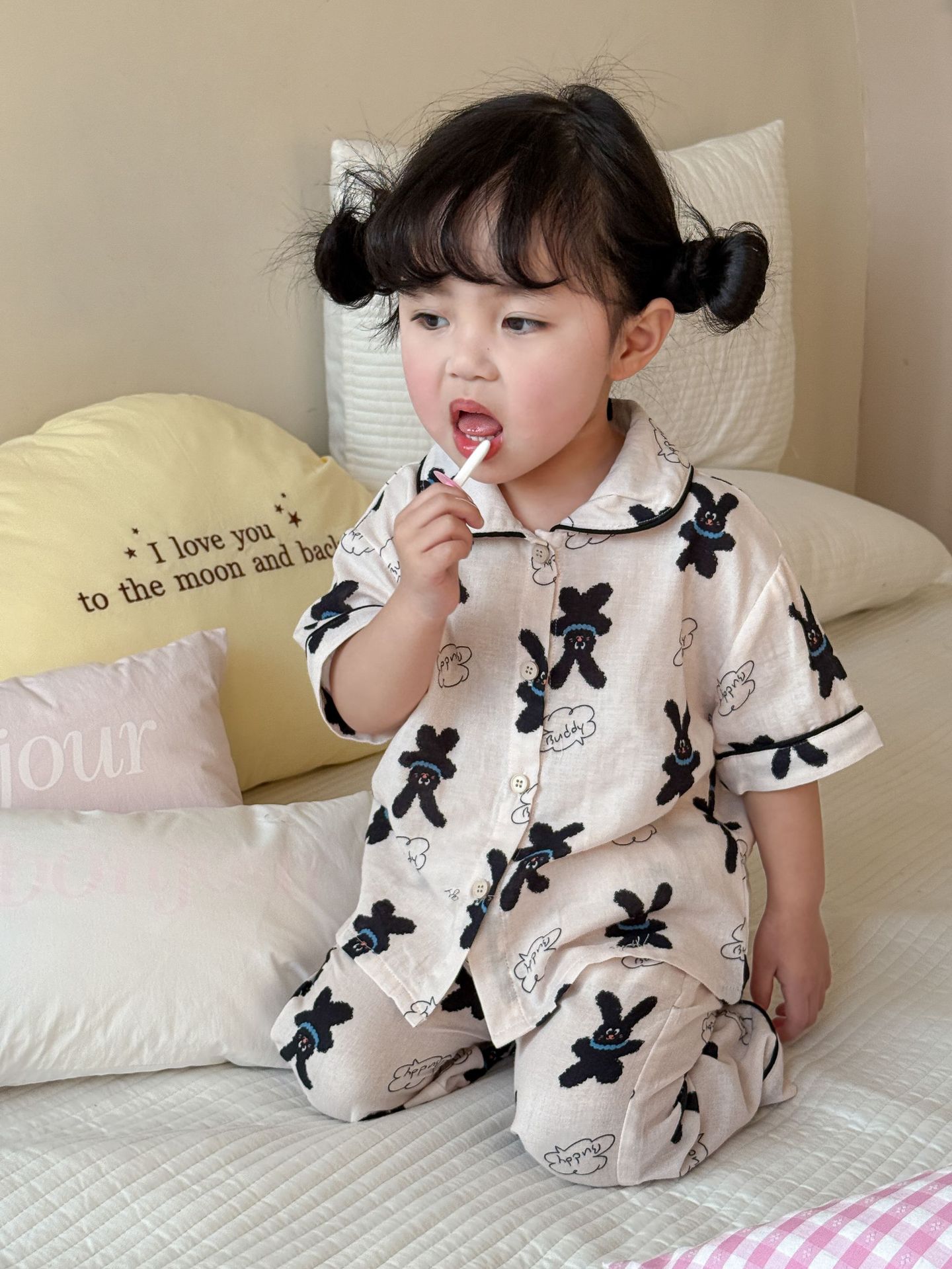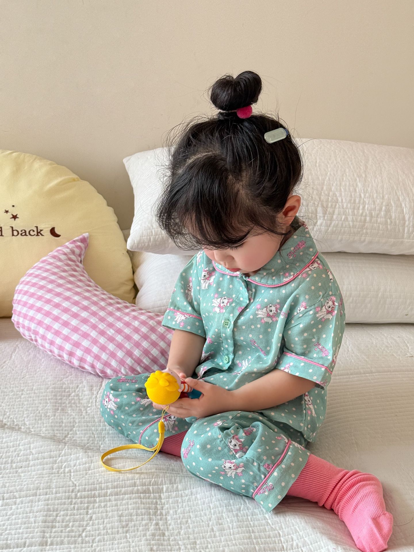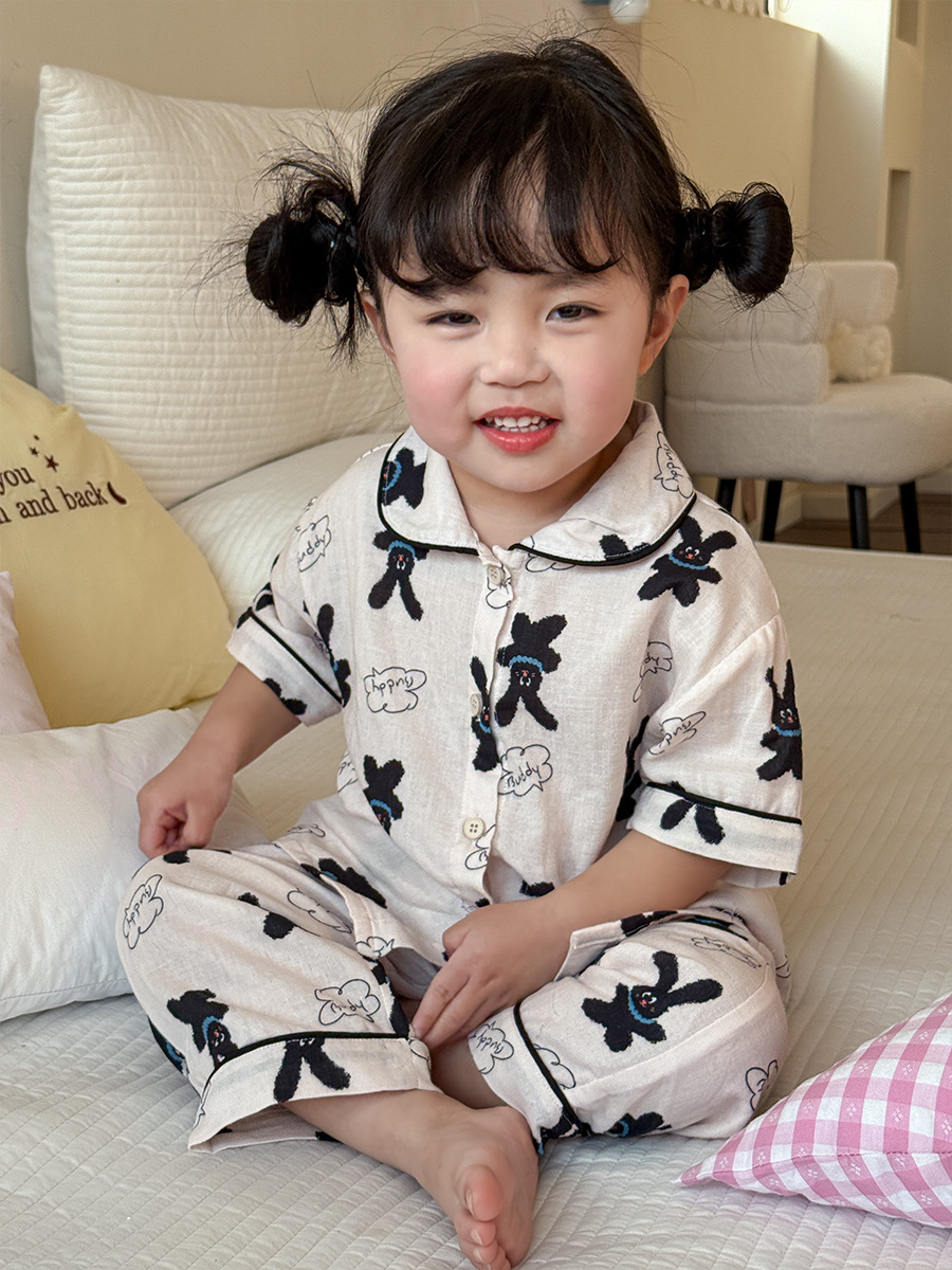 사탕 수수 배 아동복 소녀 가정복 세트 2025 봄 신입 아동복 A 통기성 거즈 아기 소녀 잠옷스토어 가기