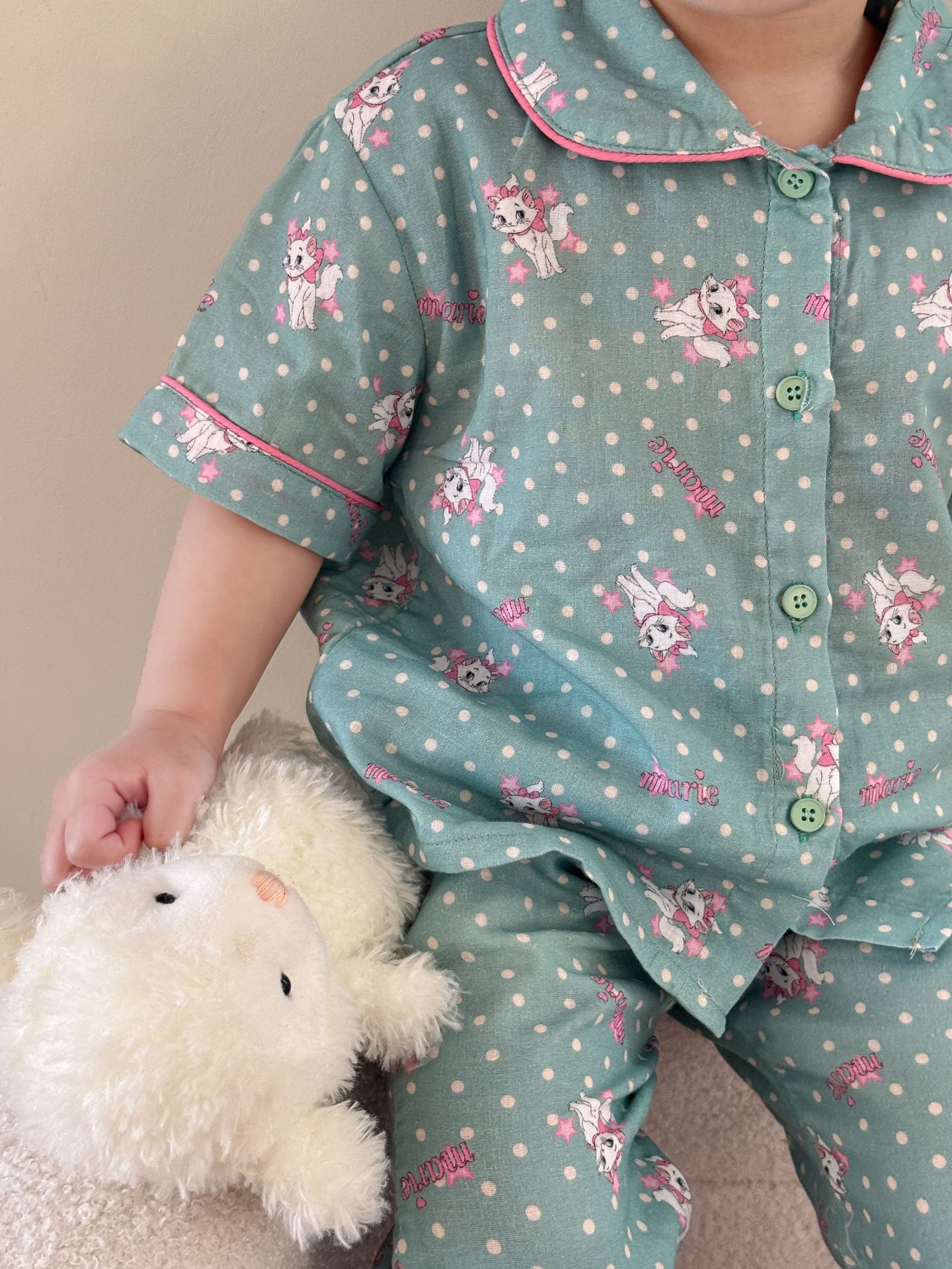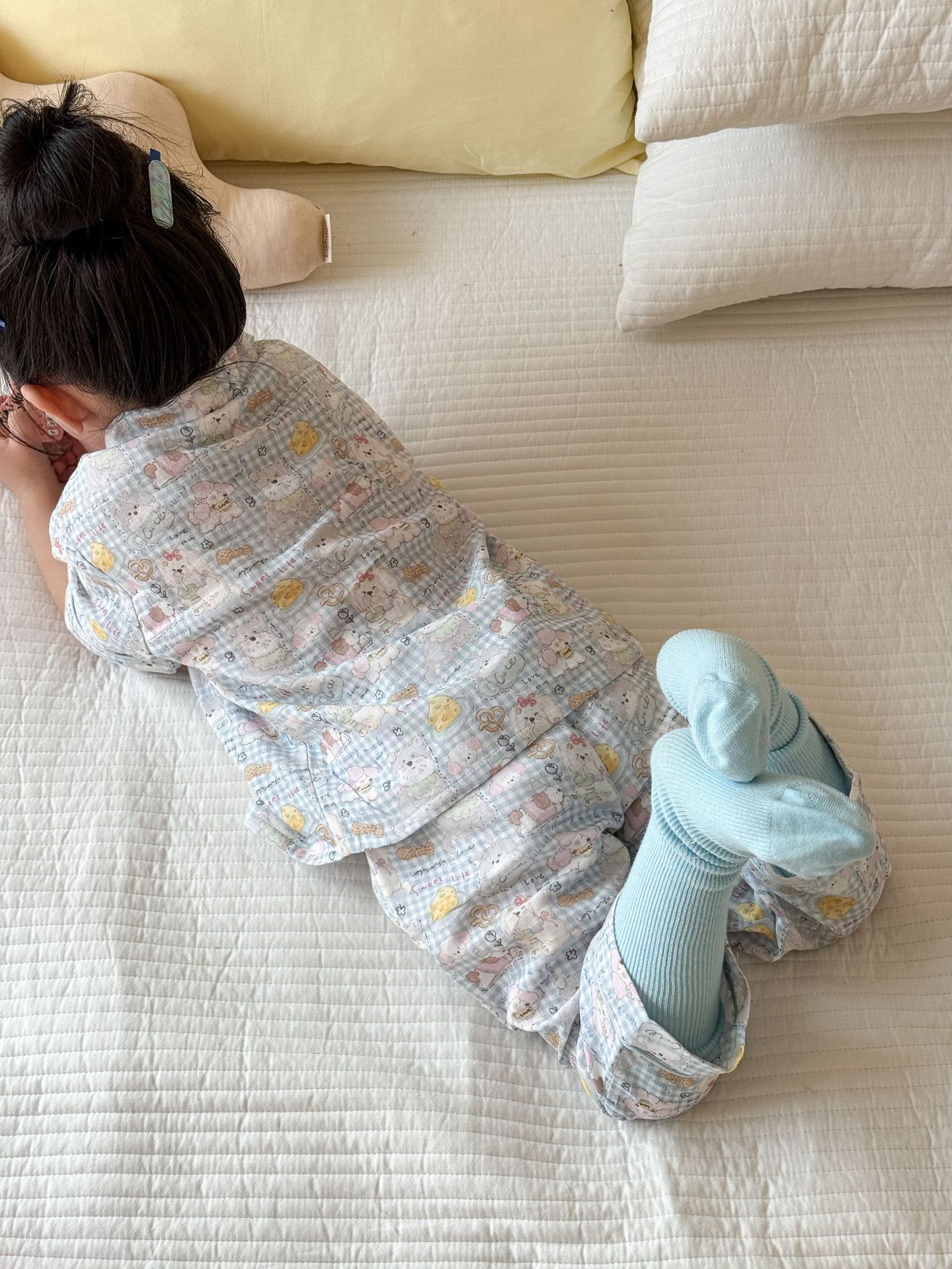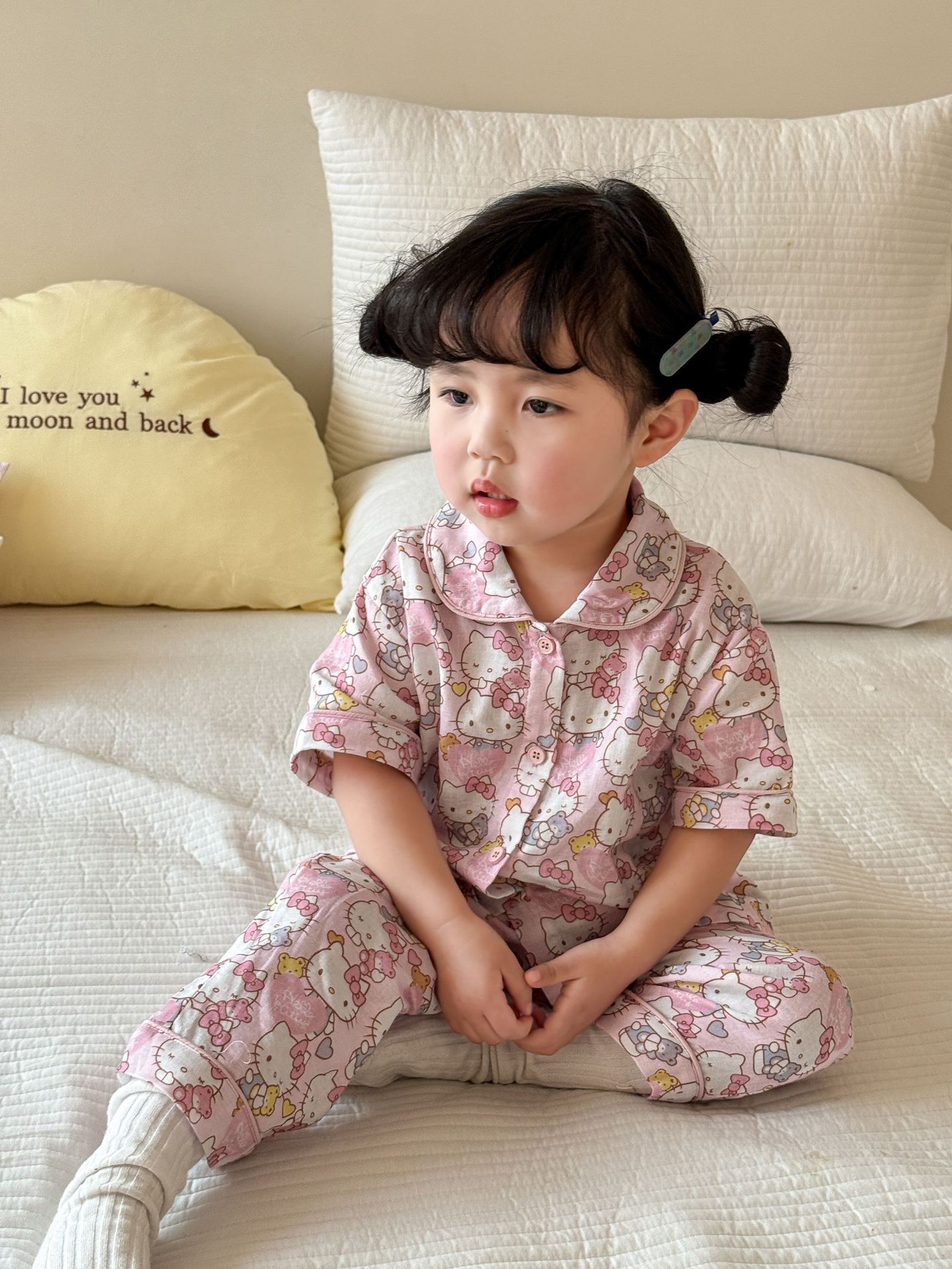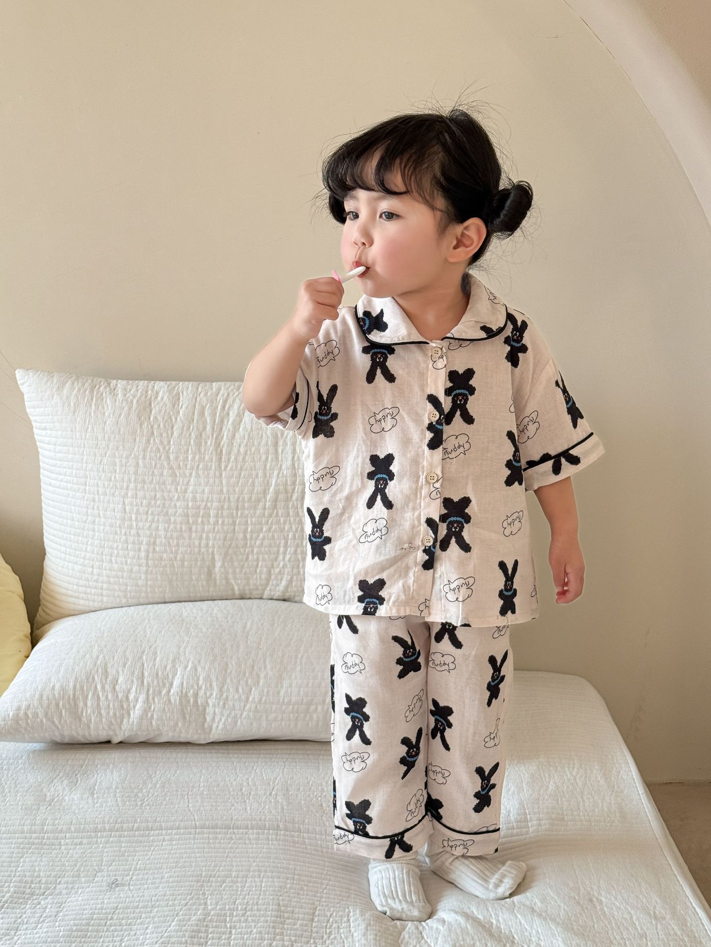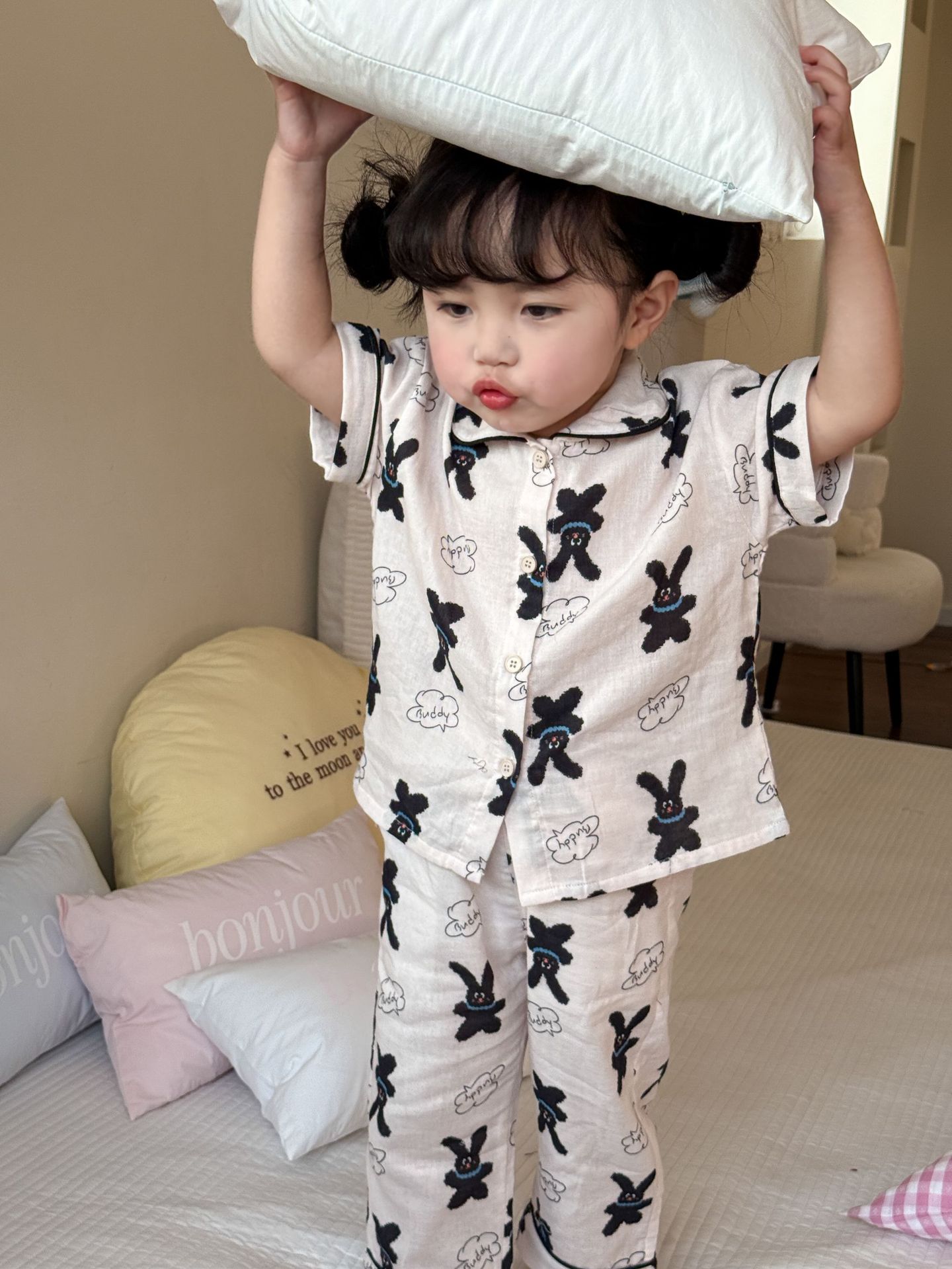 사탕 수수 배 아동복 소녀 가정복 세트 2025 봄 신입 아동복 A 통기성 거즈 아기 소녀 잠옷스토어 가기