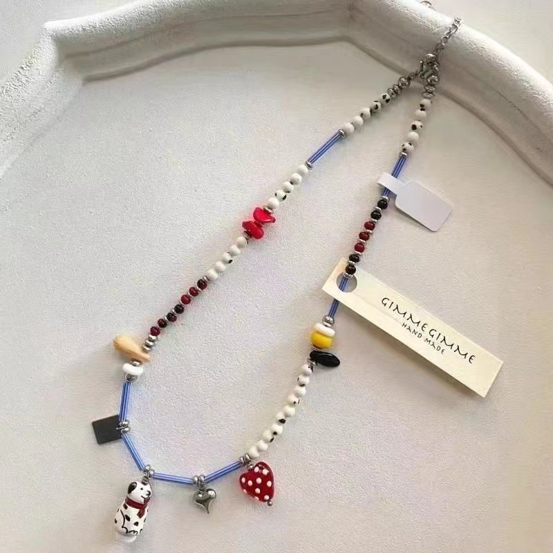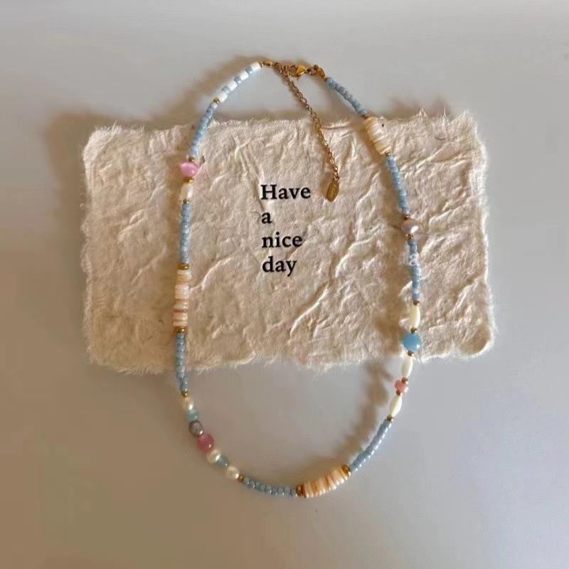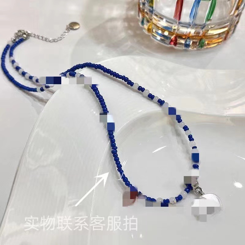 펜던트 국가 패션 고양이 눈 돌 쇄골 체인 구슬 클라인 목걸이 블루 코끼리 디자인 틈새 쌀 구슬 신선한 달콤한스토어 가기