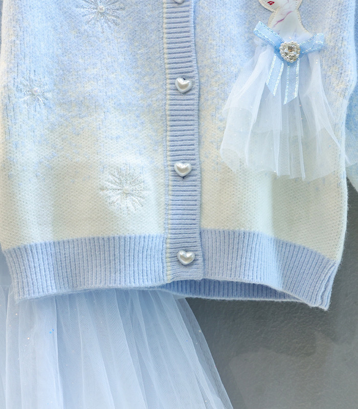 소녀 2025 가을 새로운 세트 달콤한 서양식 어린이 아이샤 공주 원피스 베일 스커트 카디건 재킷 투피스 세트