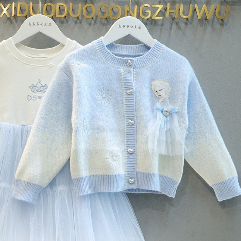 소녀 2025 가을 새로운 세트 달콤한 서양식 어린이 아이샤 공주 원피스 베일 스커트 카디건 재킷 투피스 세트스토어 가기