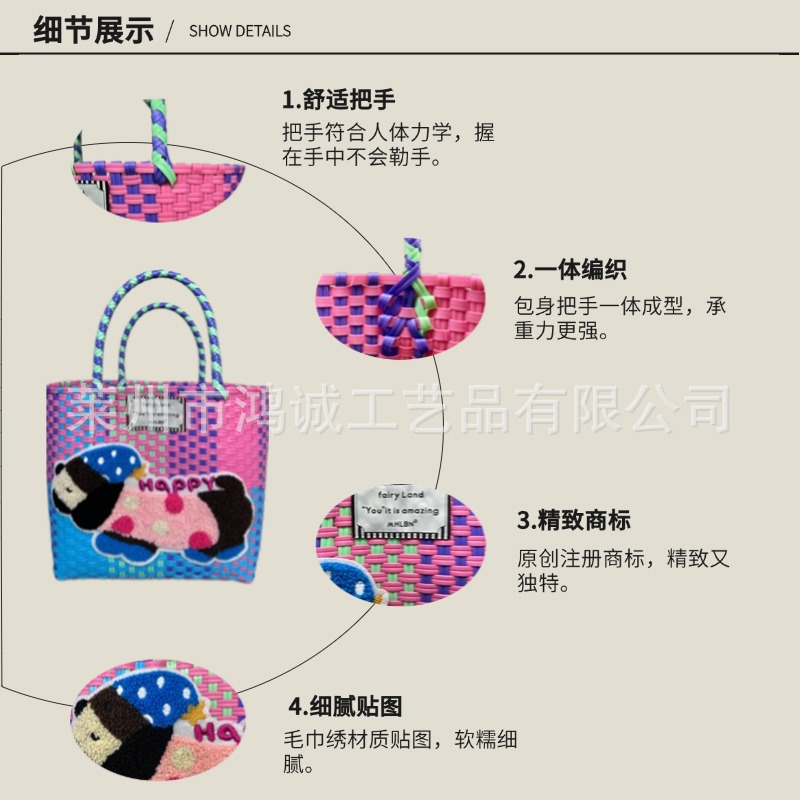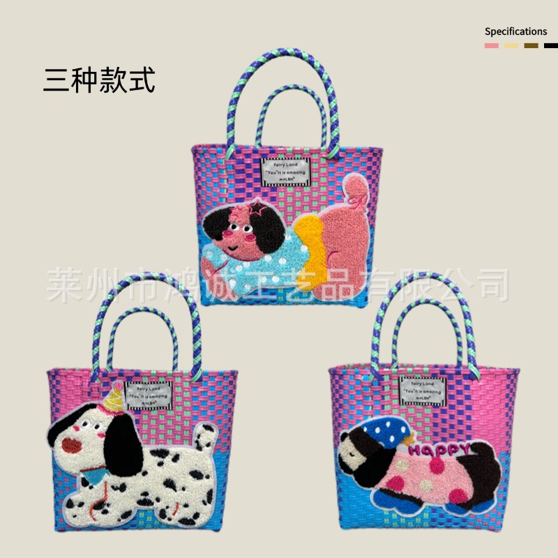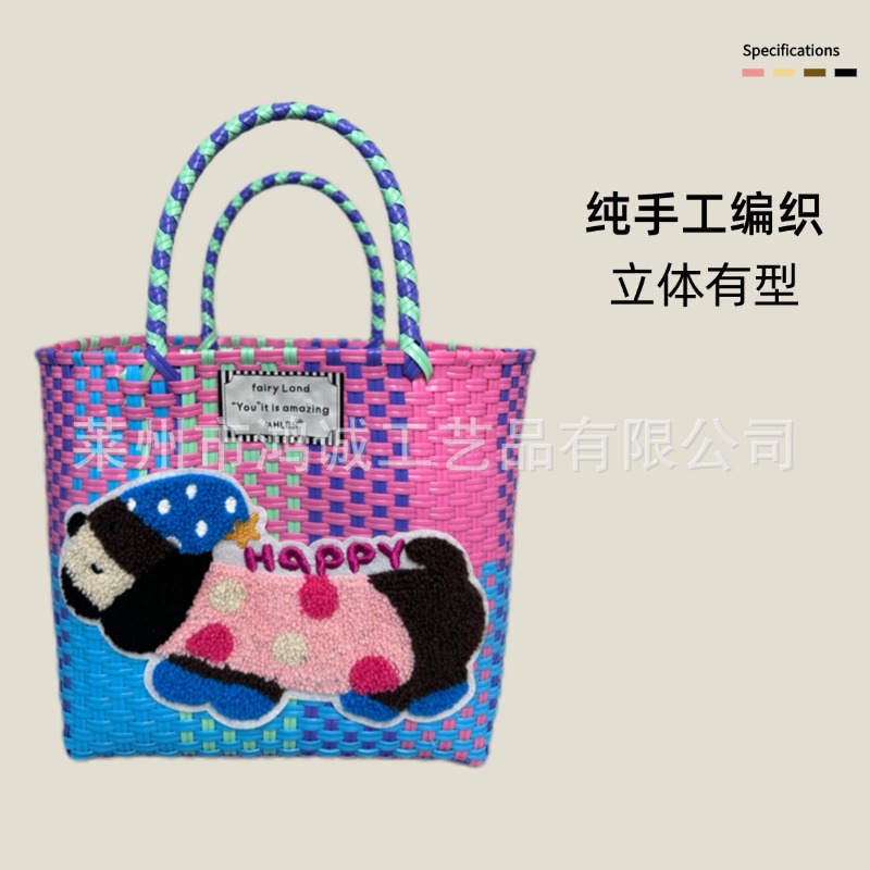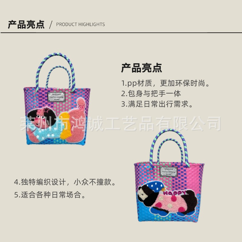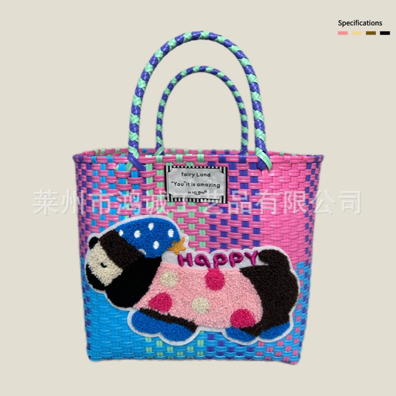 큰 수용량 짠 휴대용 야채 바구니 가방 만화 귀여운 봄 나들이 휴일 해변 휴대용 핸드백 여자를위한 가방