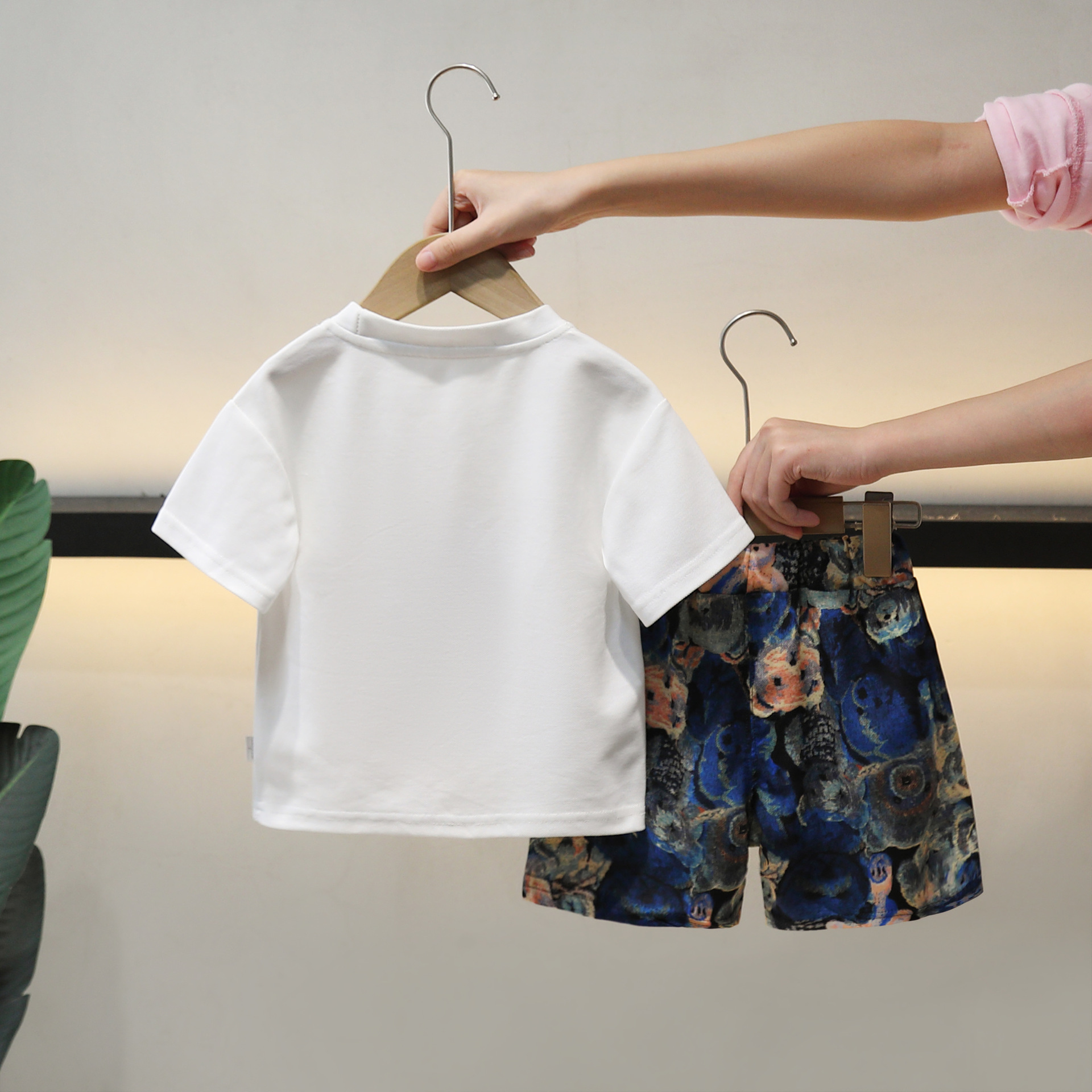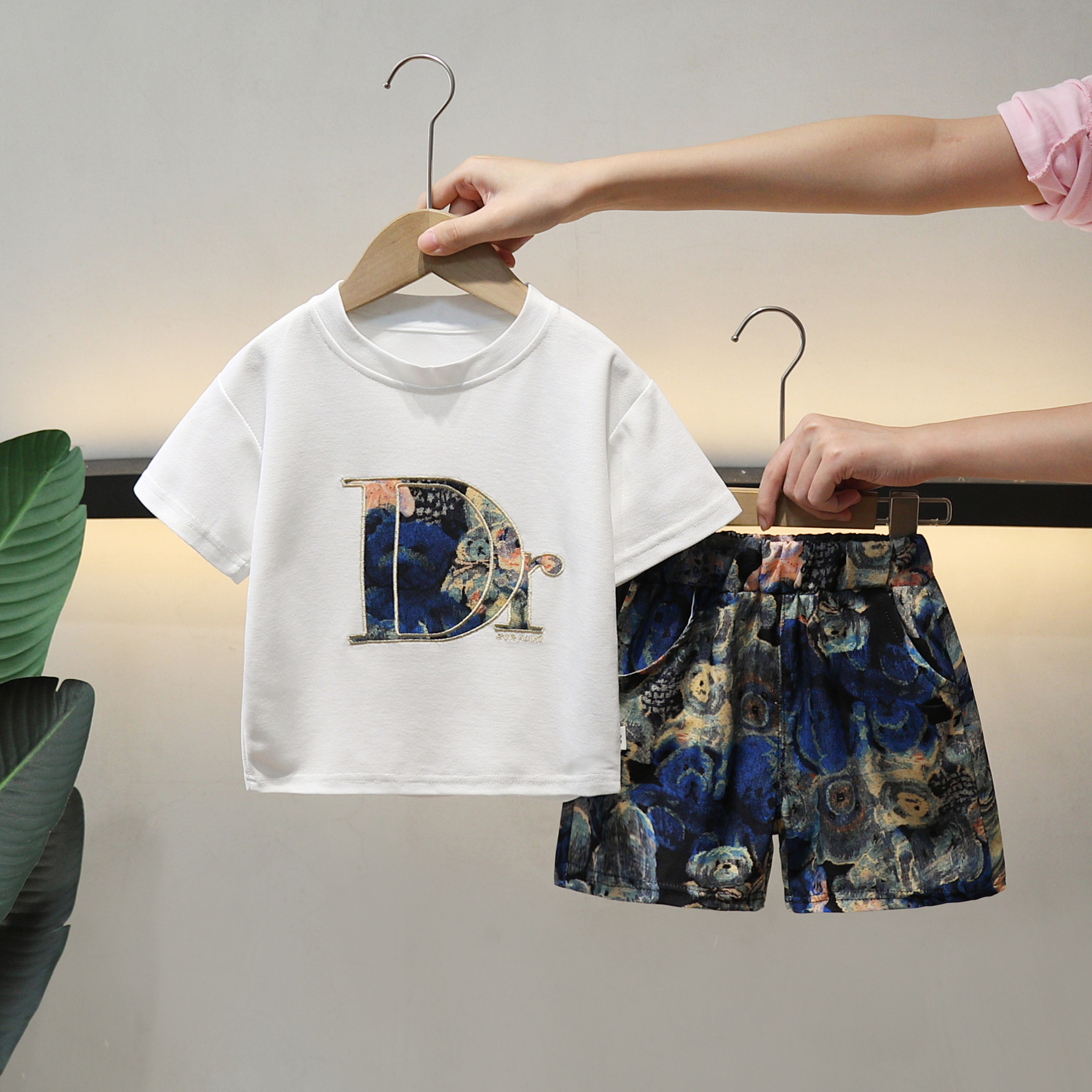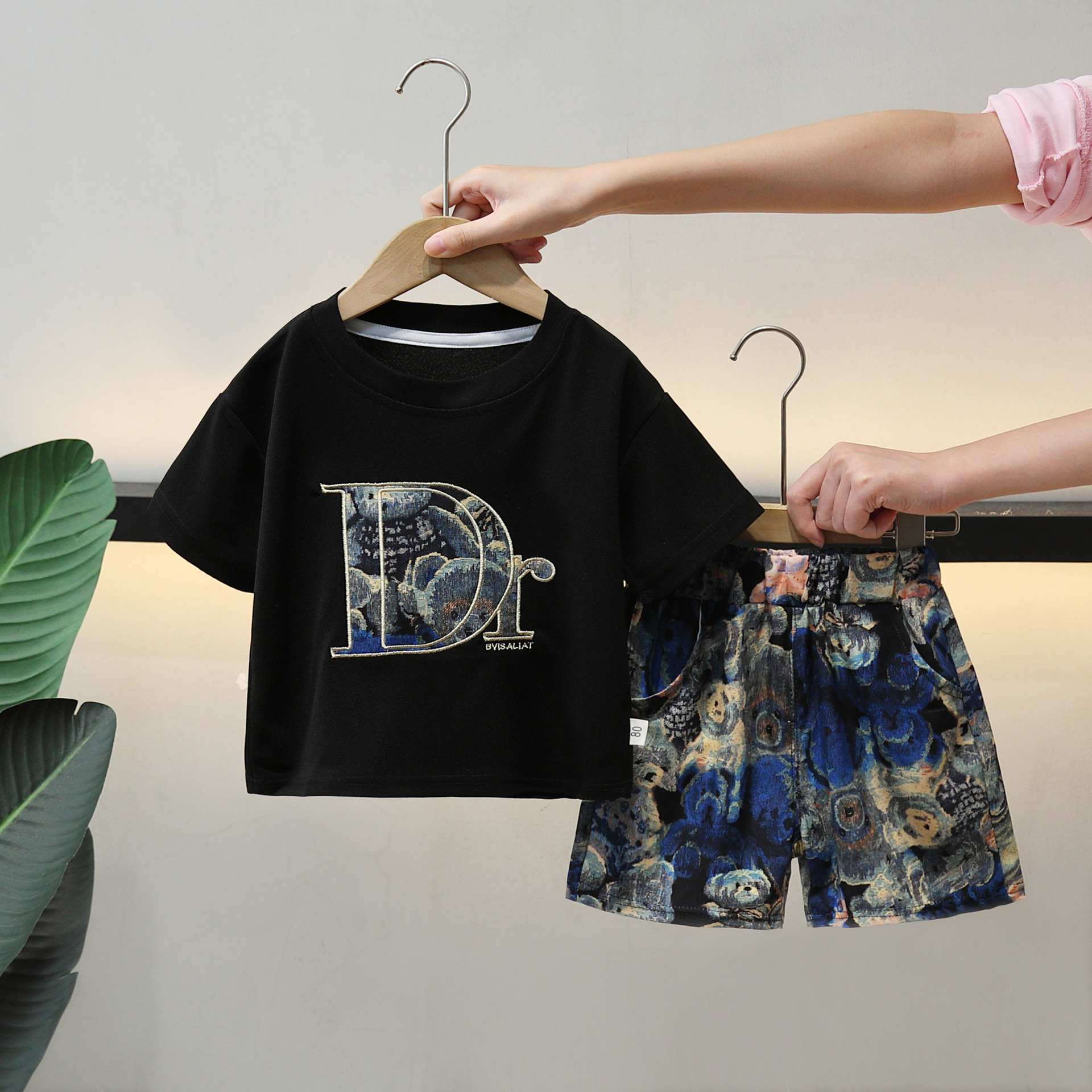 5 개의 작은 7 개의 아동복 2025 여름 새로운 0-4 세 어린이 소년 소녀 편지 Dr 반팔 티셔츠 투피스 세트