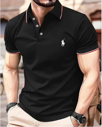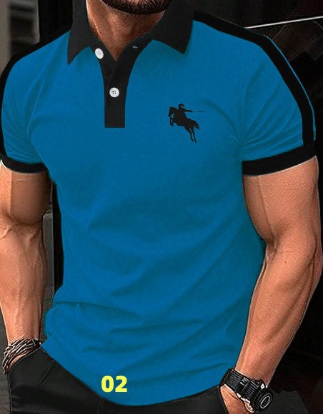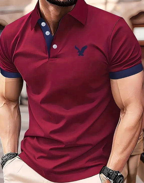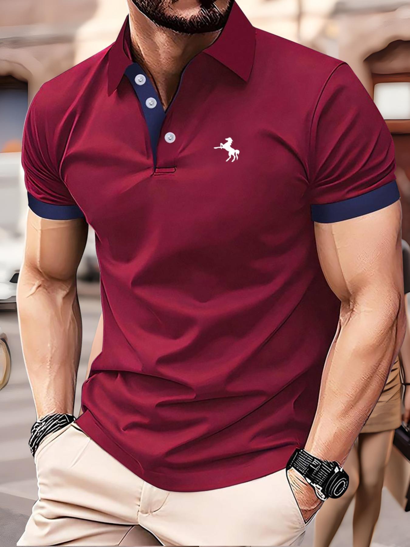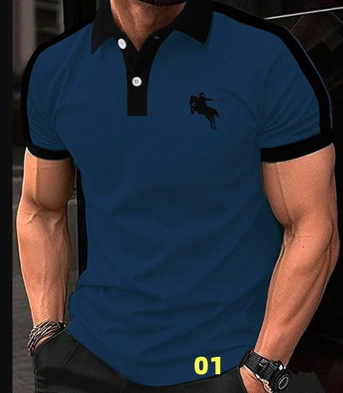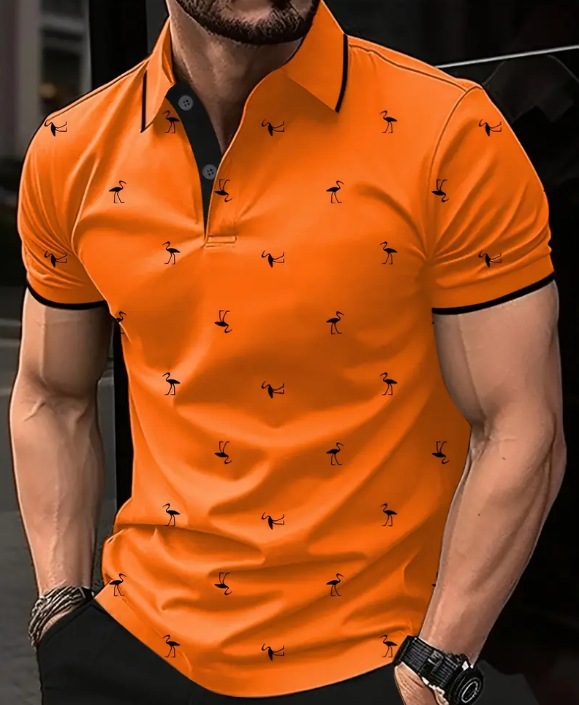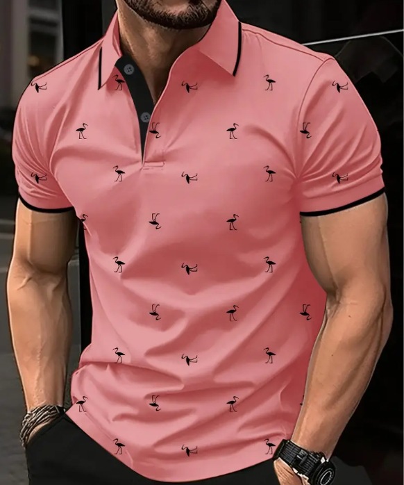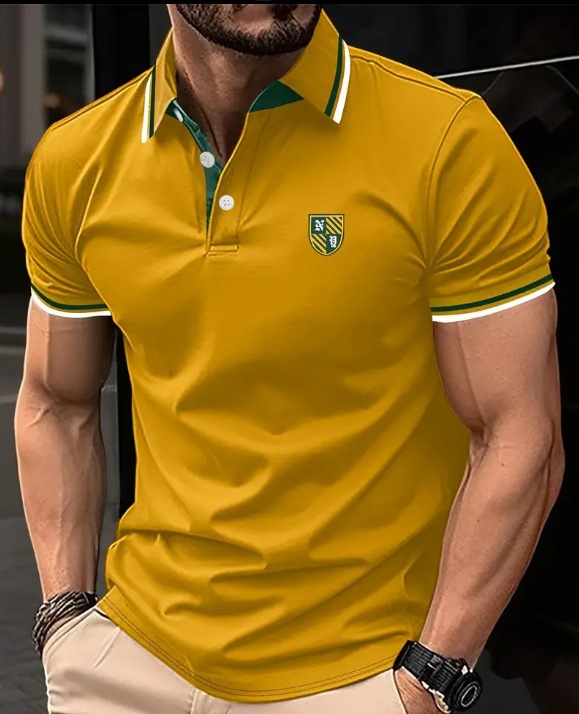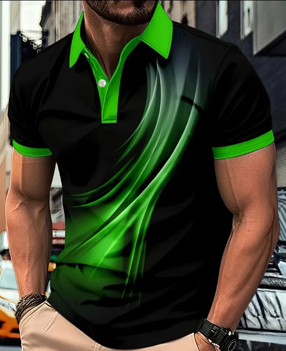 새로운 크로스보더 여름 패션 남성 프린트 컬러 반소매 라펠 셔츠, 골프 및 테니스 등 야외 활동에 적합