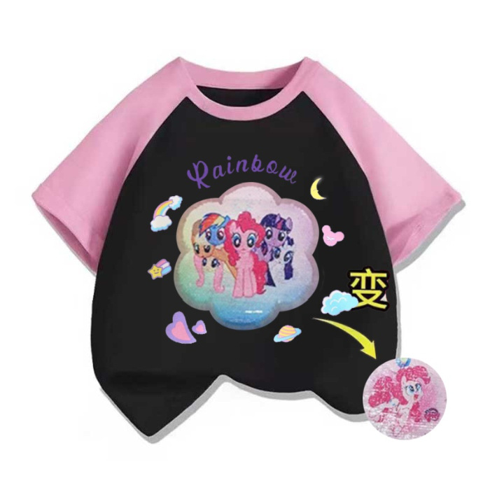 포니 메리 걸스 탑 올 매치 아동복 걸스 티셔츠 여름 새로운 도착 스타일 반소매 라스 숄더 느슨한 여름스토어 가기