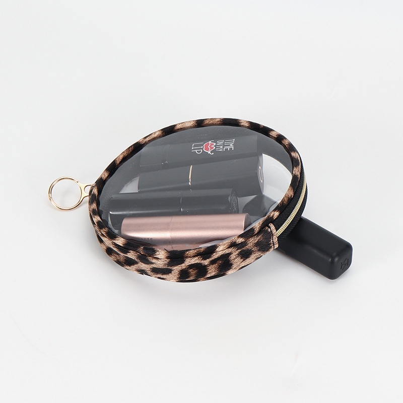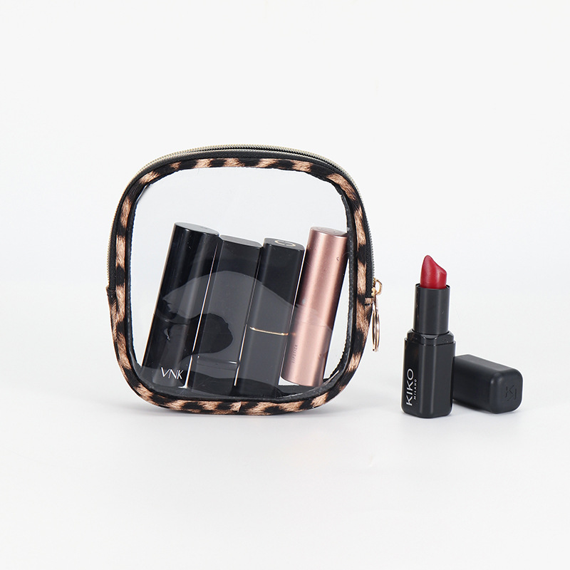 새로운 재고 도매 국경 무역 전자 상거래 립스틱 화장품 가방 레오파드 무늬 휴대용 여행 투명 PVC 세척 가방스토어 가기