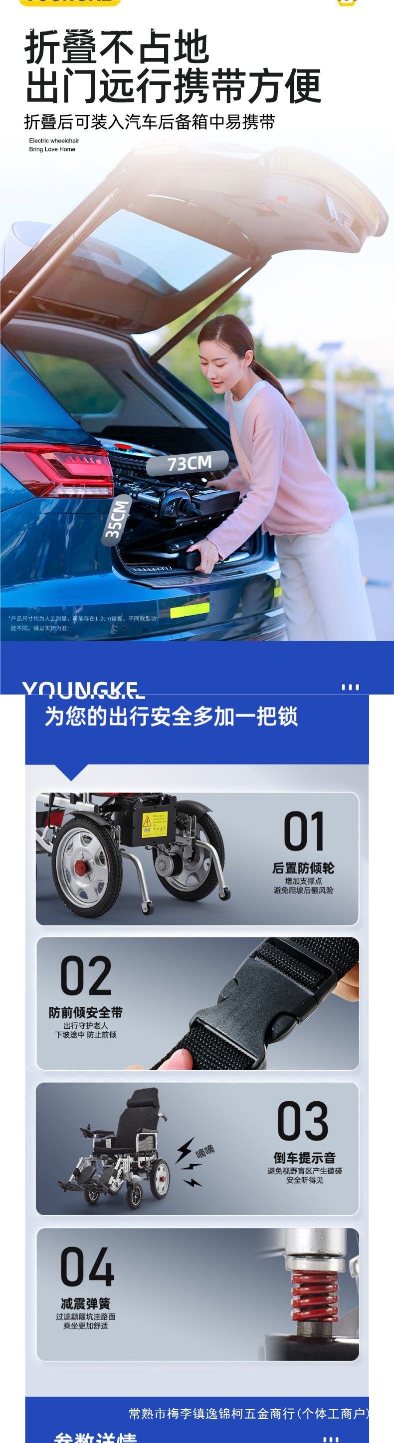 양케 전기 휠체어 접이식 경량 지능형 완전 자동 4 륜 스니퍼 장애인을위한스토어 가기