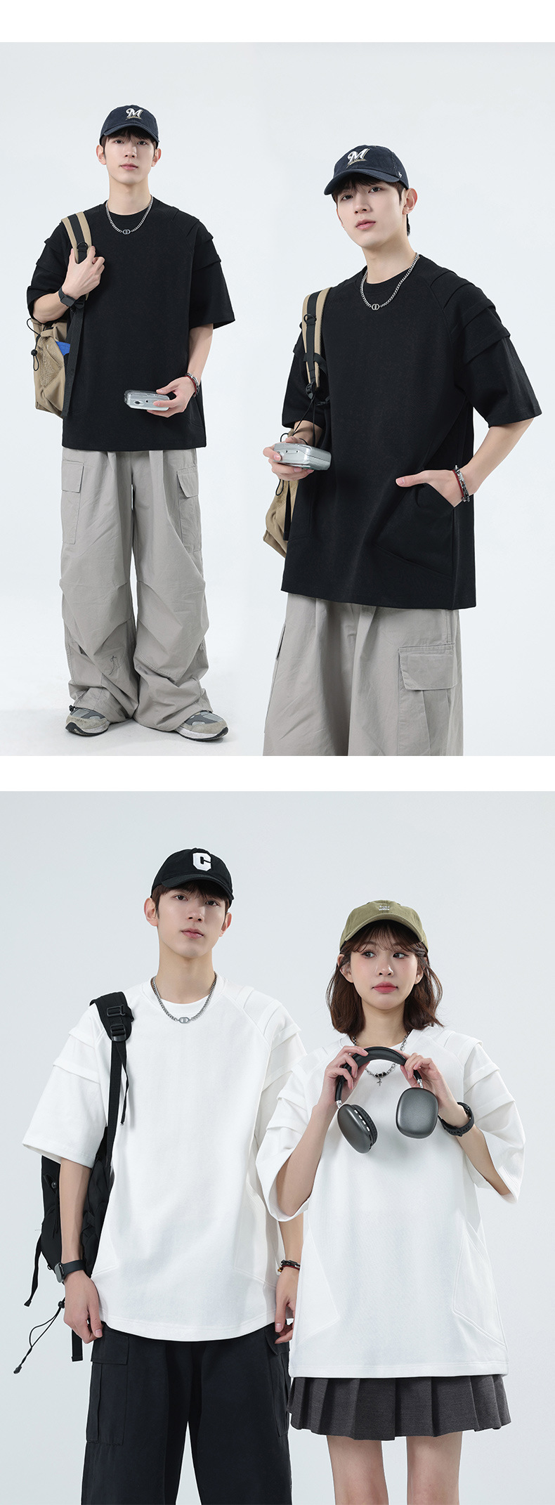 2025 여름 새로운 오리지널 디자인 홍콩 스타일 짧은 소매 티셔츠 남성용 플러스 사이즈 느슨한 커플 헤비 라운드 넥 티셔츠 남성용스토어 가기