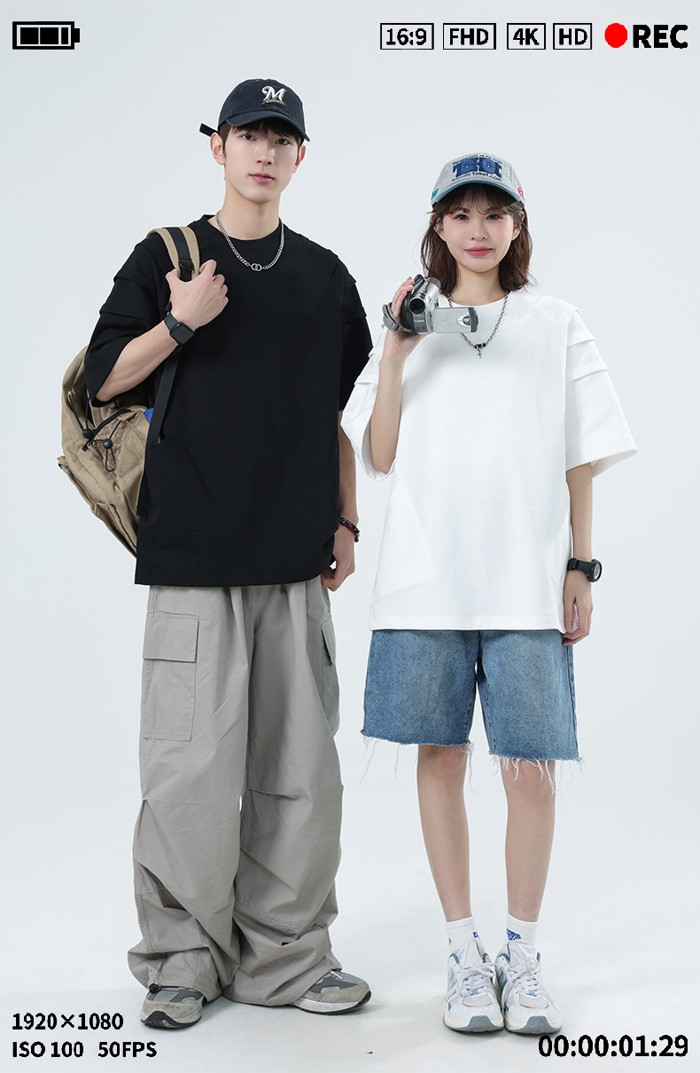 2025 여름 새로운 오리지널 디자인 홍콩 스타일 짧은 소매 티셔츠 남성용 플러스 사이즈 느슨한 커플 헤비 라운드 넥 티셔츠 남성용