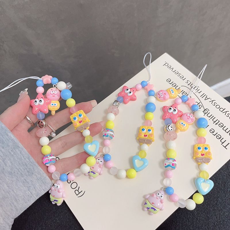 만화 애니메이션 스폰지 밥 체인 휴대 전화 케이스 교수형 액세서리 캔디 컬러 패트릭 비즈 카메라 여성 체인스토어 가기