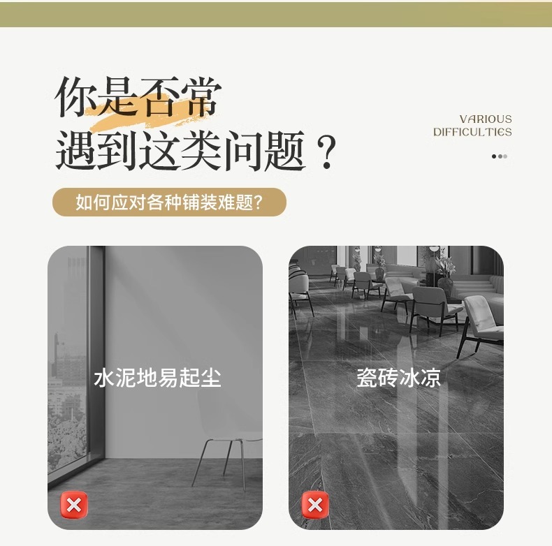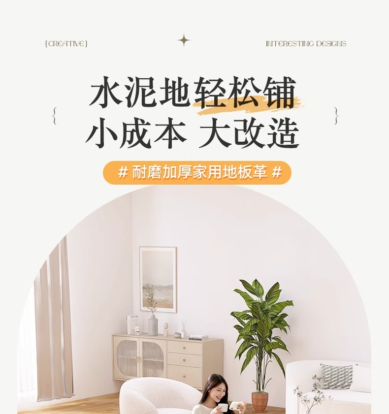 ✅침실 가정용 바닥 가죽 시멘트 바닥 직접 두꺼운 내마모성 방수 슬라이딩 PVC 플라스틱 바닥 접착제